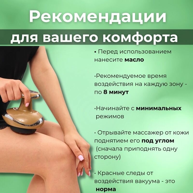 | Вид массажа | вакуумный / комбинированный / роликовый |