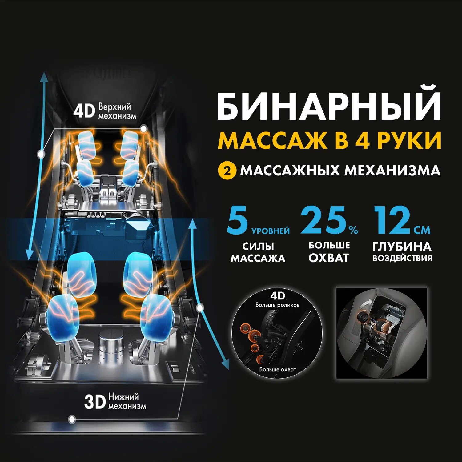 | Вид массажа | 4D-массаж / Шиацу / акупунктурный / воздушно-компрессионный / разминающий / раскатывающий |