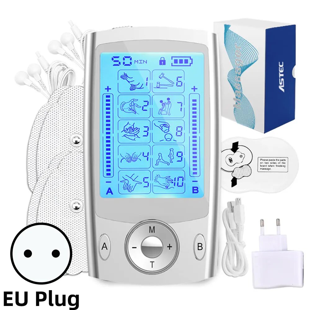 10-режимный электрический аппарат для физиотерапии EMS, стимулятор мышц Tens, иглоукалывание, массаж тела, цифровая терапия, быстрая Прямая поставка, EU PLUG