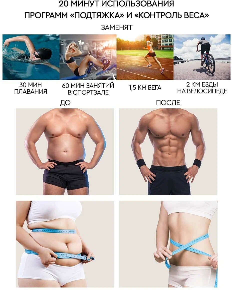 | Комплектация | Миостимулятор, 10 х гель-кремниевых электродов, 2 провода на 4 электрода, 2 провода для аксессуаров, пояс, тапочки, наколенник\налокотник, адаптер питания 6В |