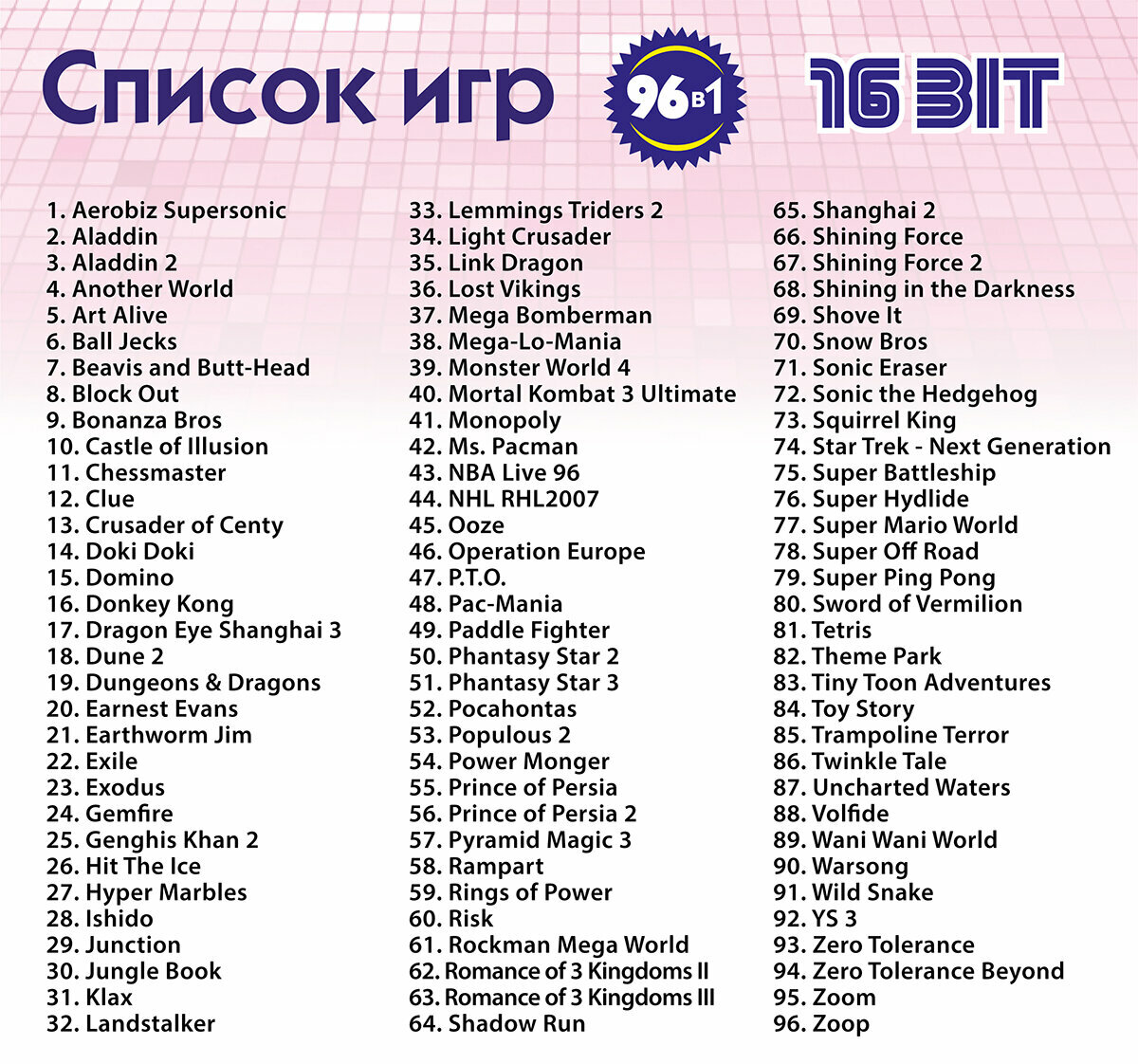 Ниже Вы можете прочитать отзывы на Картридж для приставок 16 бит Sega Magistr Mega Drive / 96 игр Wargame Варгейм, ознакомится с подробными характеристиками, посмотреть интересные обзоры и фотографии на Картридж для приставок 16 бит Sega Magistr Mega Drive / 96 игр Wargame Варгейм.