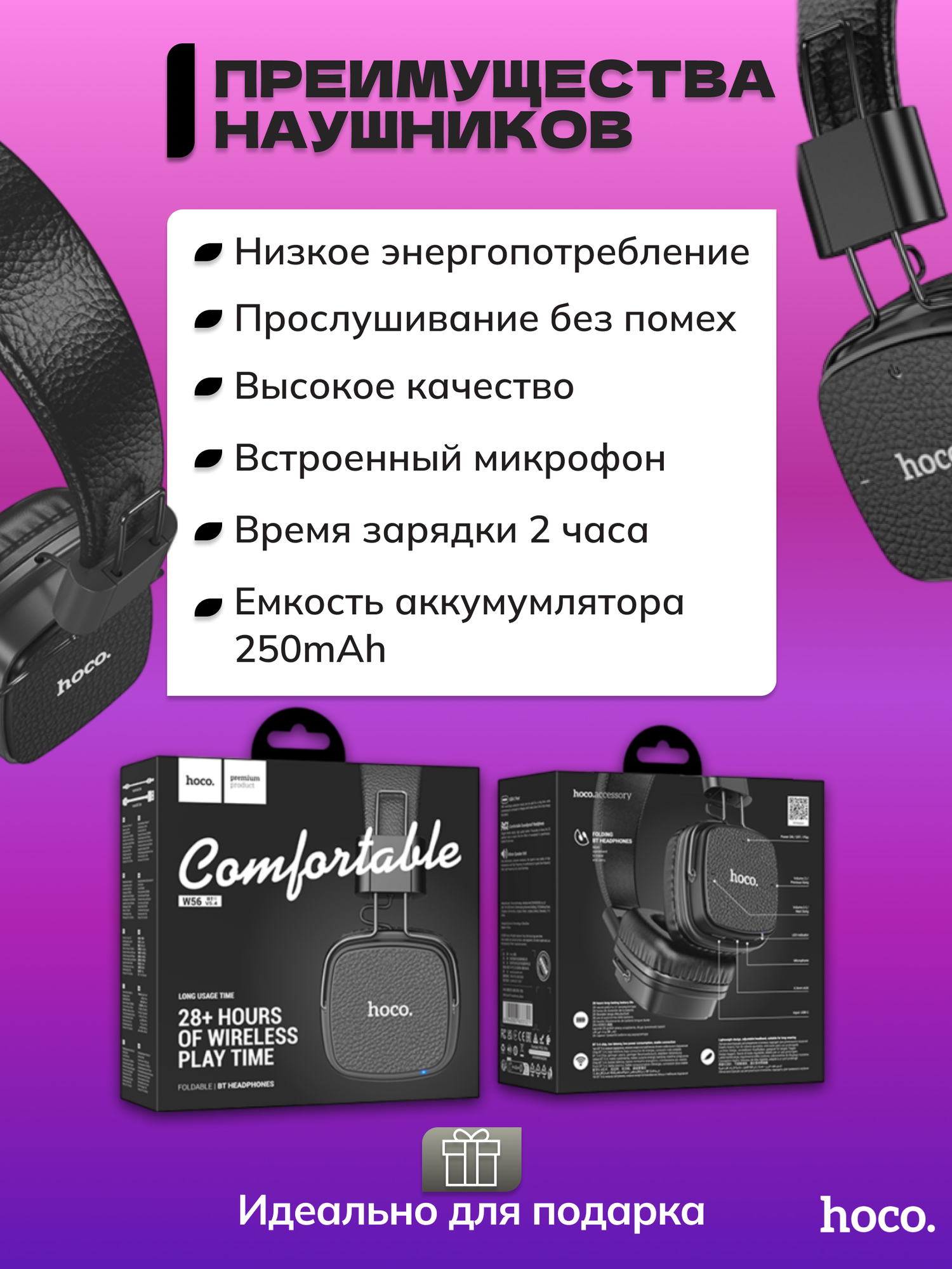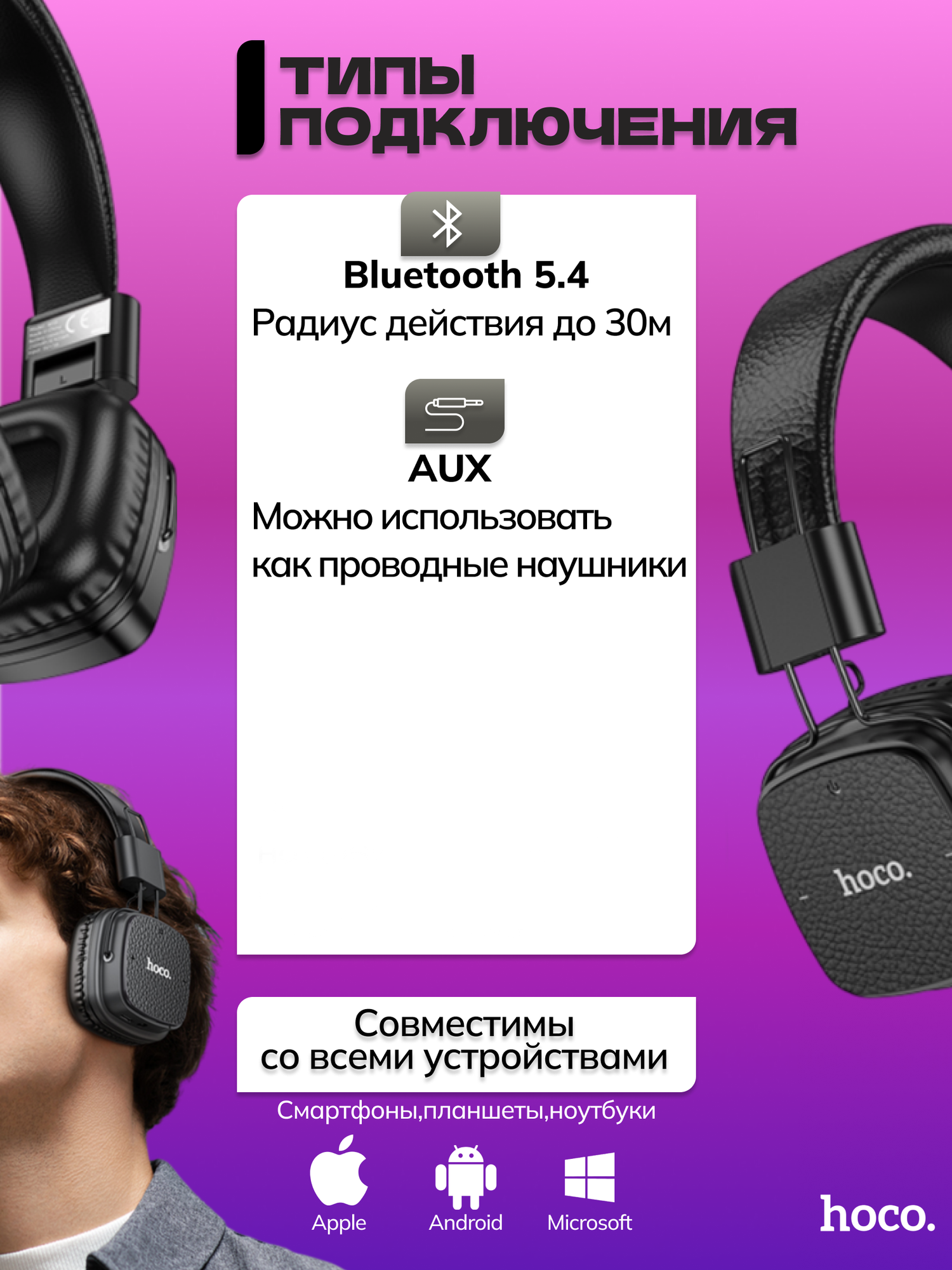 Беспроводной полноразмерный Bluetooth-наушник Hoco с технологией Bluetooth 5,4 Черный интересное: