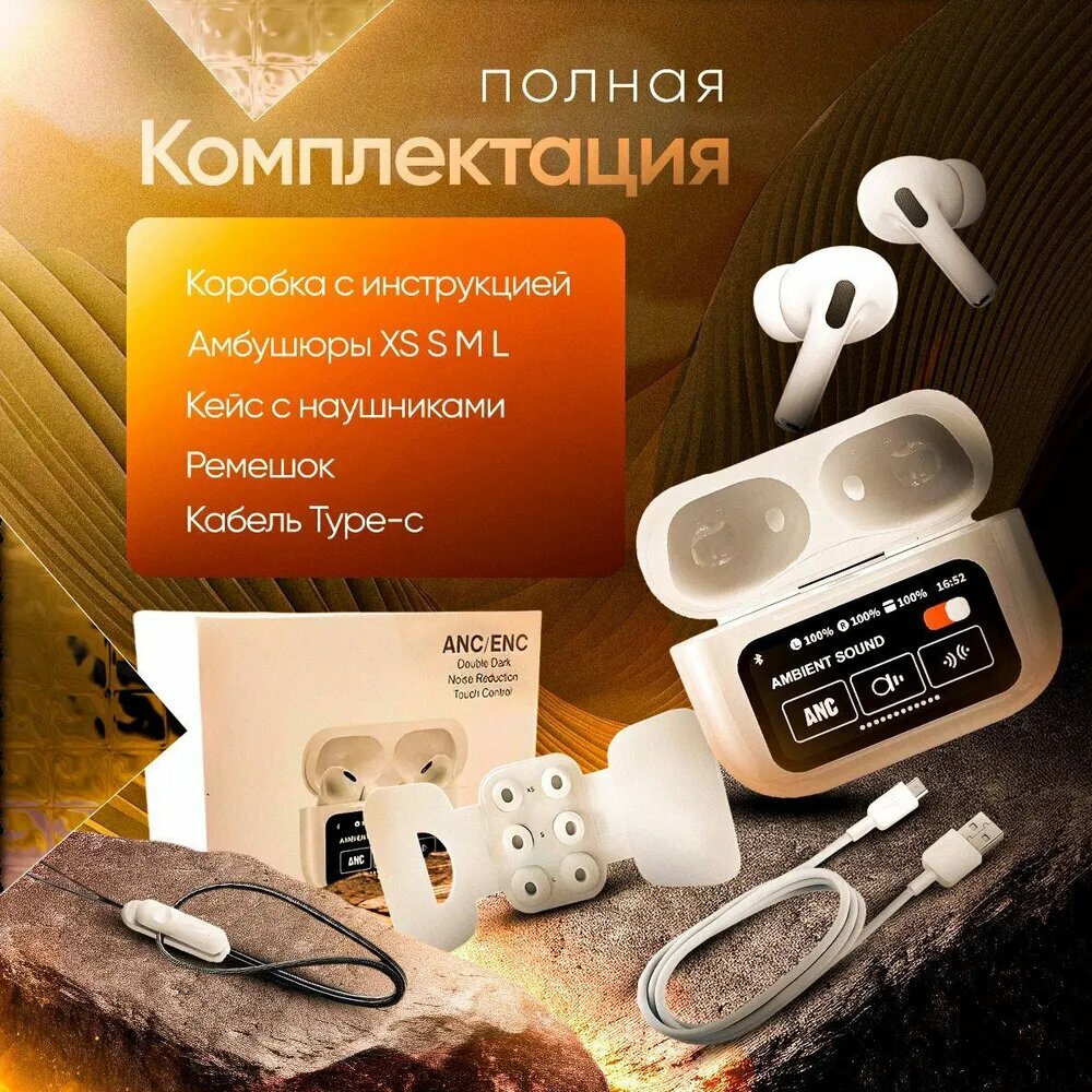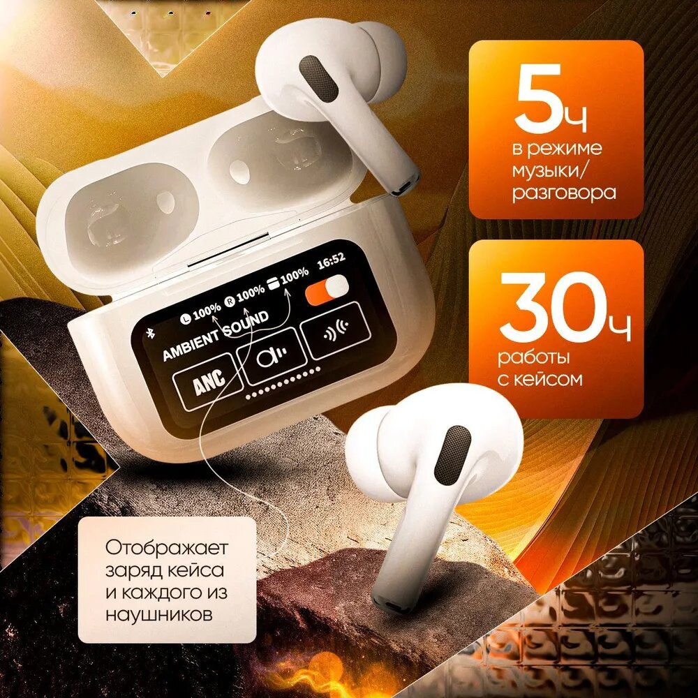 Беспроводные блютуз наушники с сенсорным Экраном/ Наушники с дисплеем для iphone и android, белые интересное: