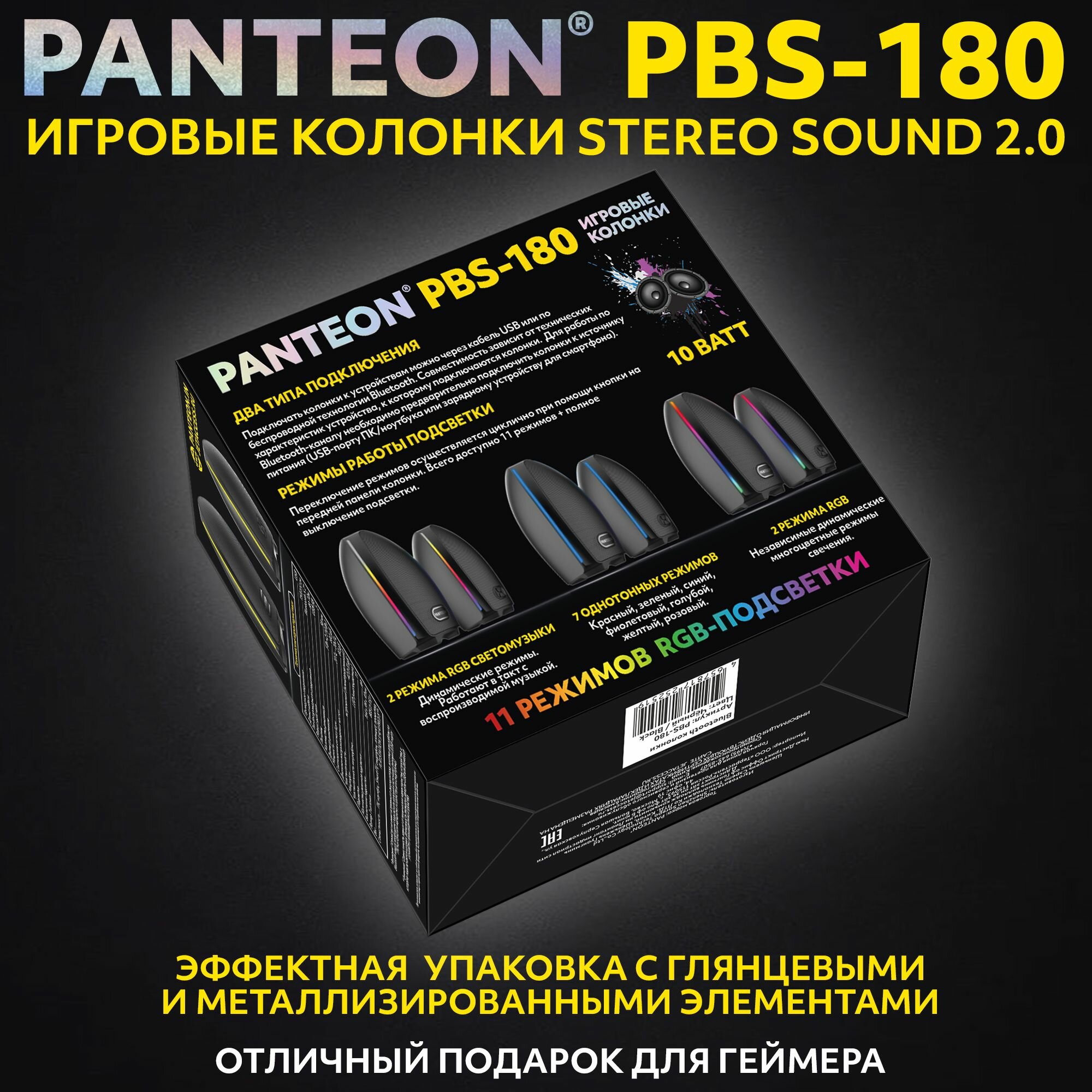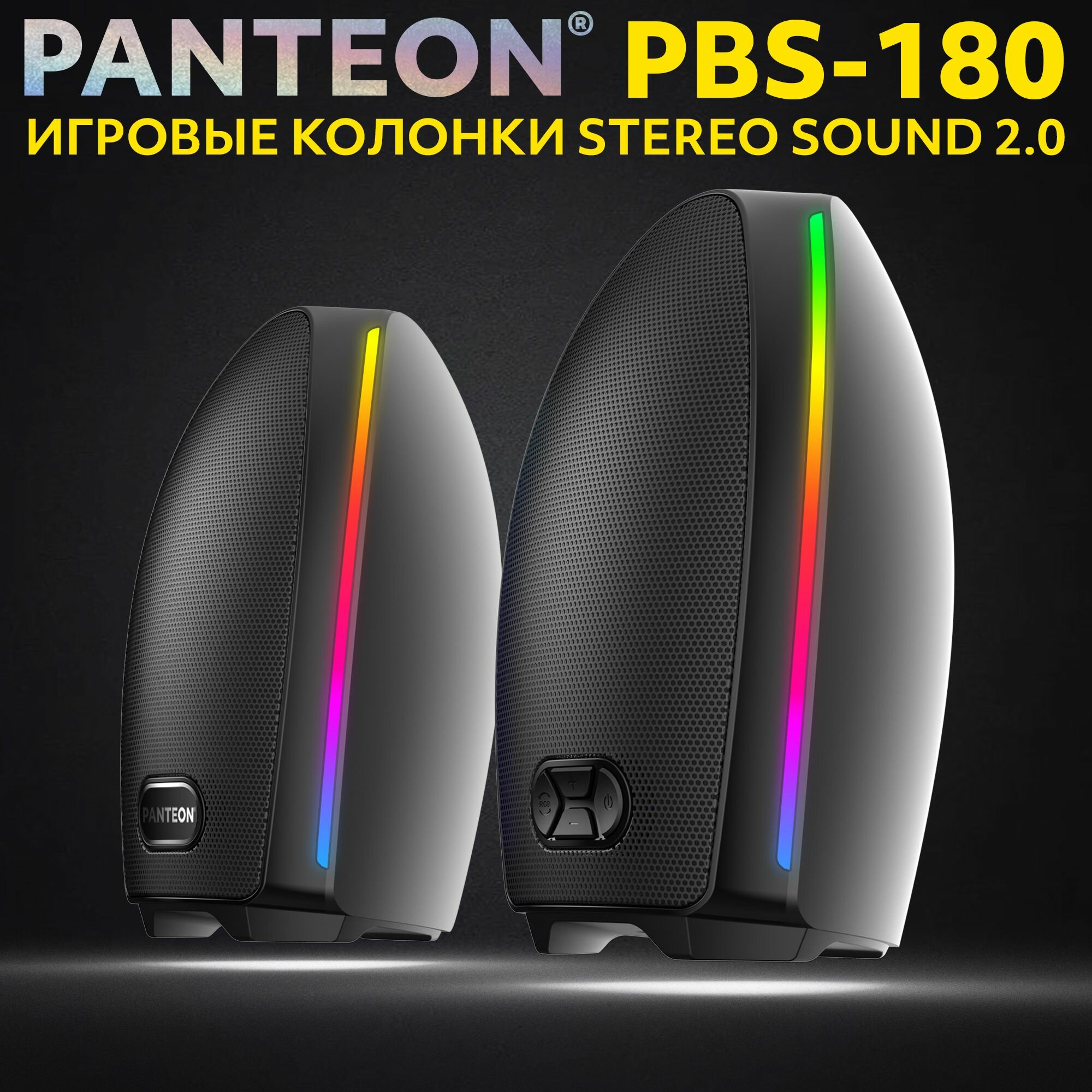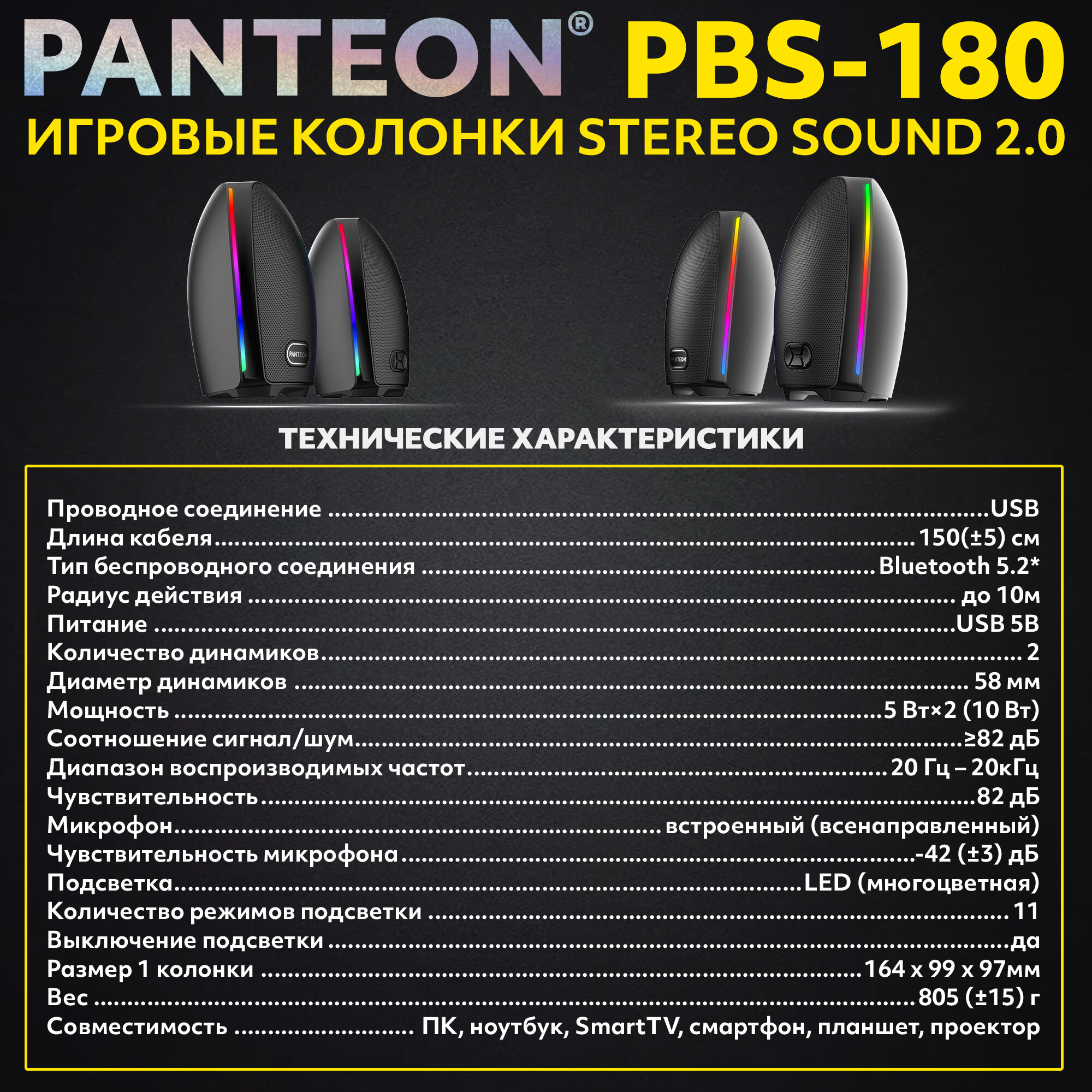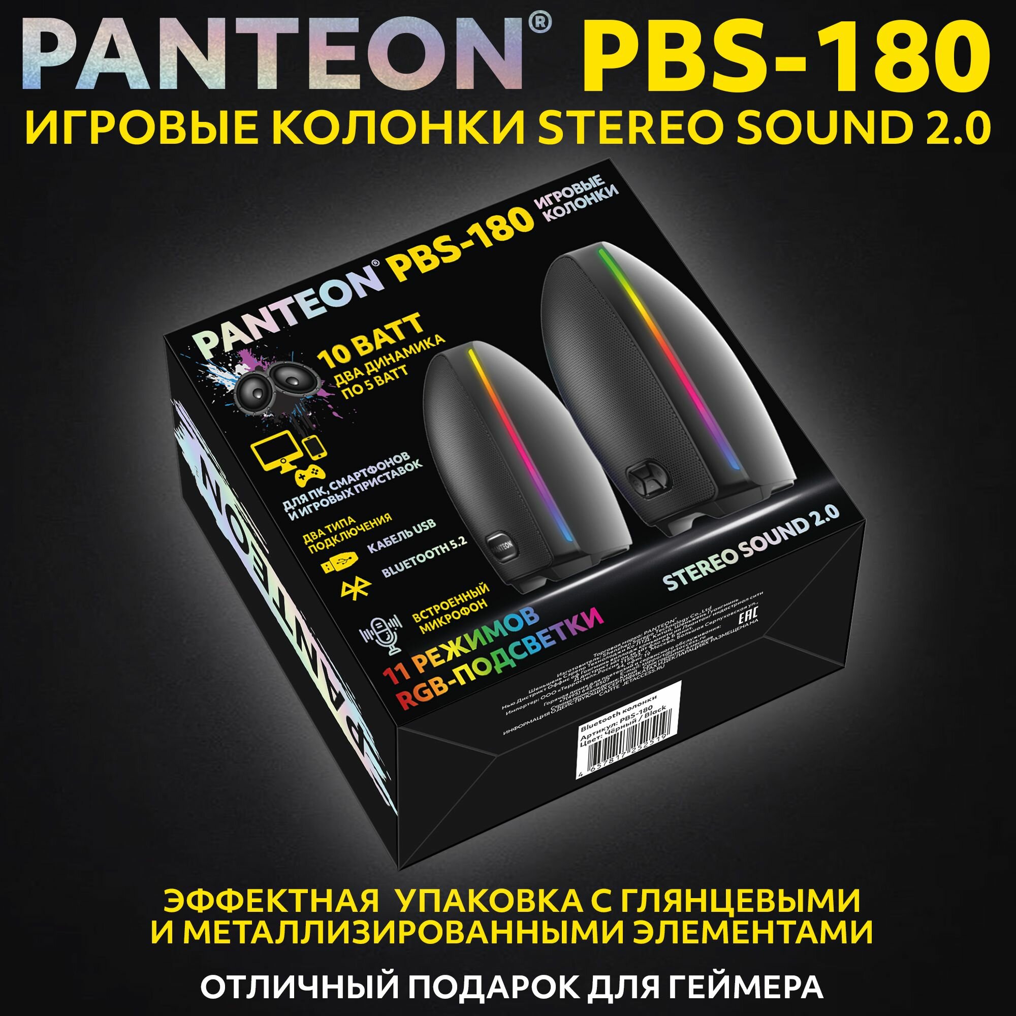 Купить PANTEON PBS-180 Black Игровые колонки STEREO SOUND 2.0 (2 динамика по 5 Вт(10 Вт), воспроизведение по USB/Bluetooth 5.2, микрофон, подсветка RGB, питание USB 5В, кабель 150 см)