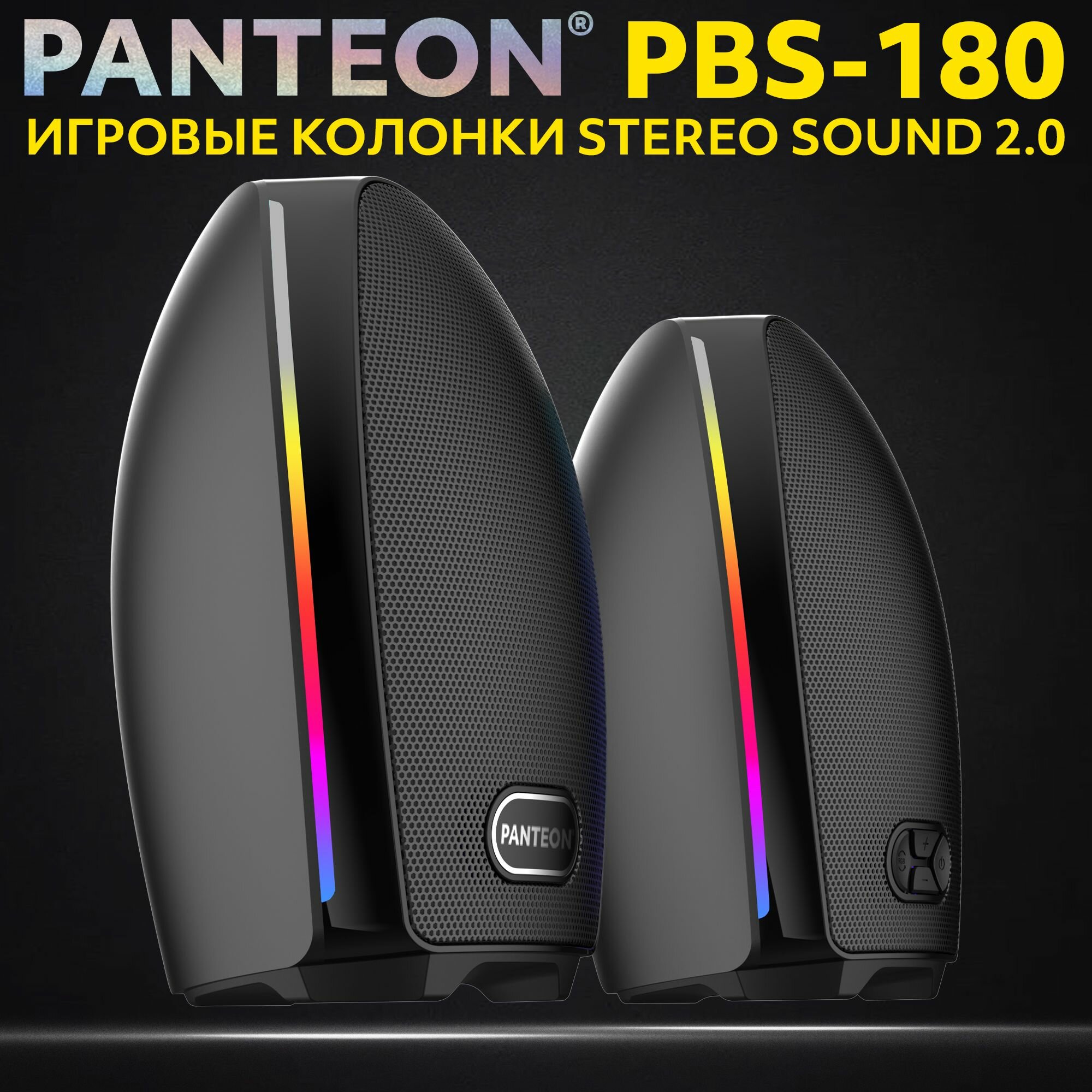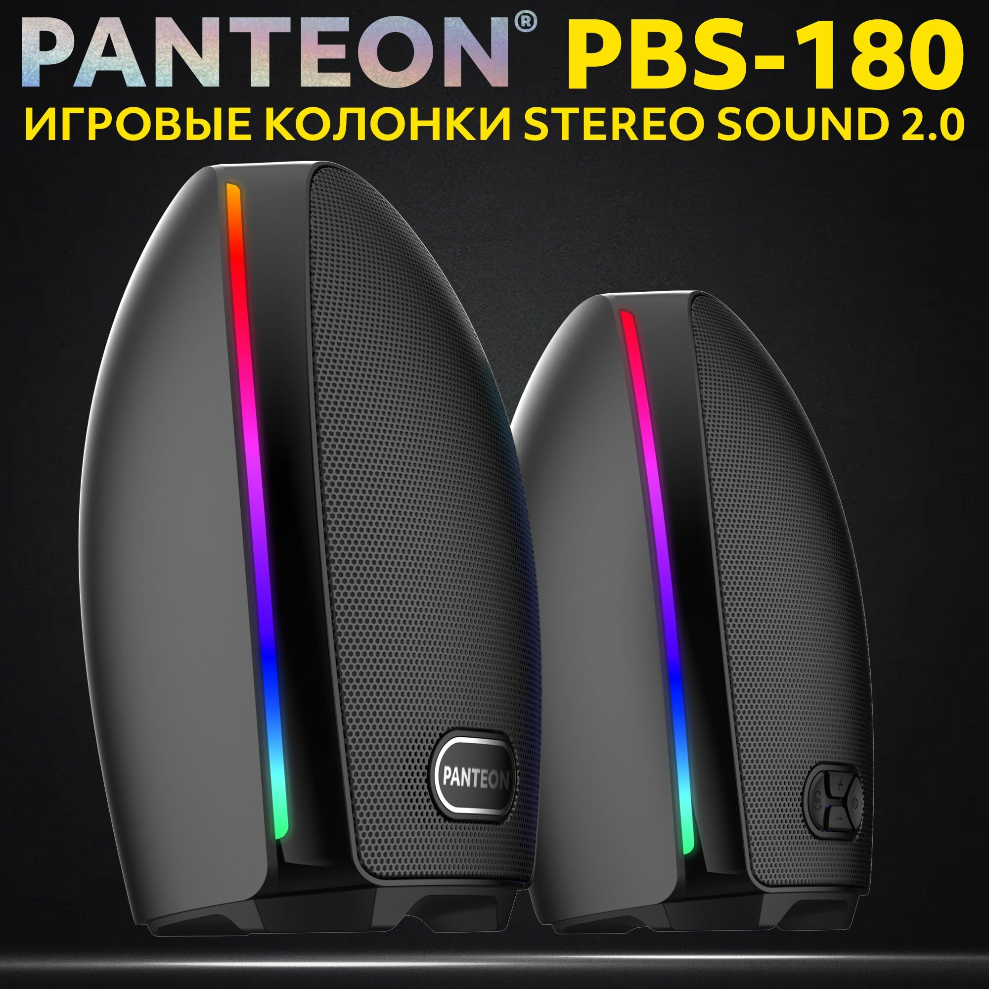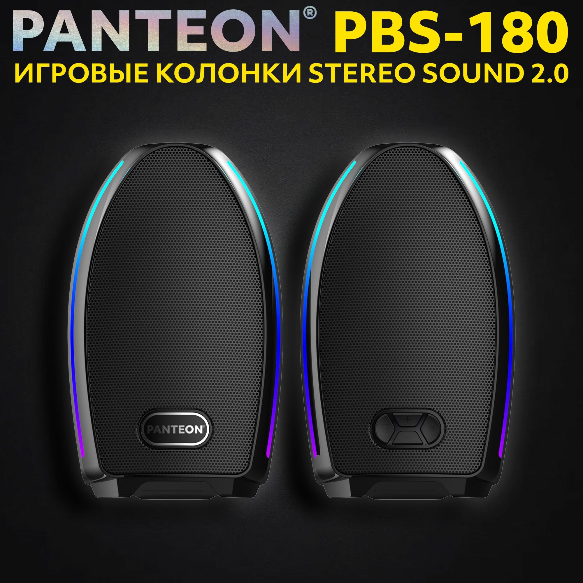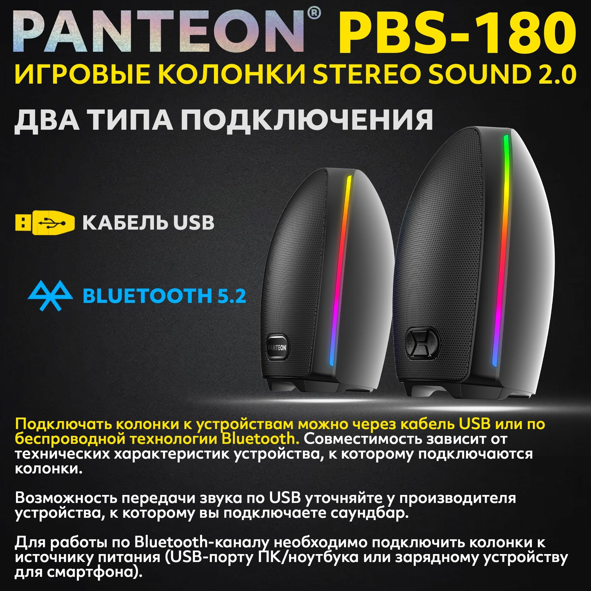 Купить PANTEON PBS-180 Black Игровые колонки STEREO SOUND 2.0 (2 динамика по 5 Вт(10 Вт), воспроизведение по USB/Bluetooth 5.2, микрофон, подсветка RGB, питание USB 5В, кабель 150 см)