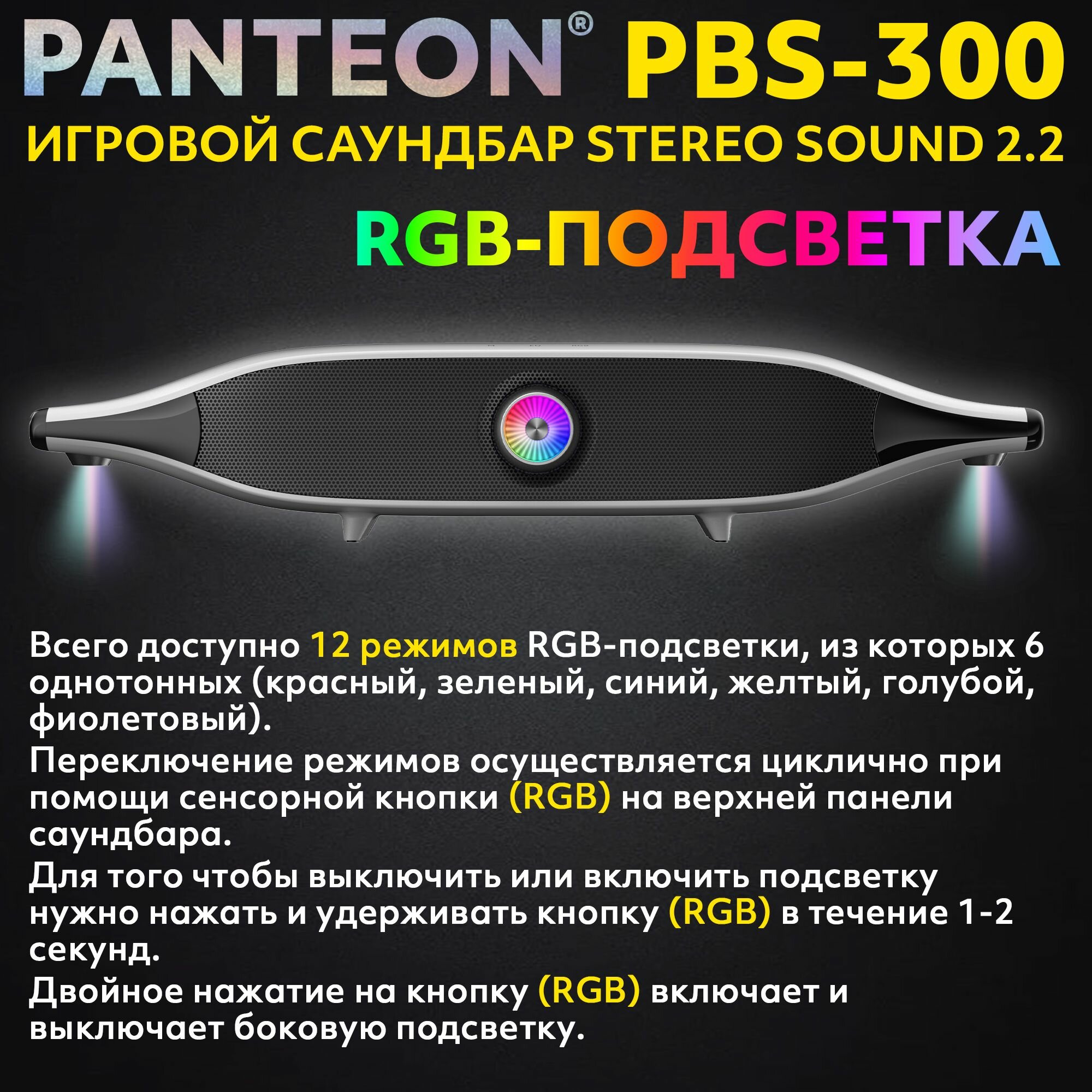 PANTEON PBS-300 W Black Игровой беспроводной саундбар STEREO SOUND 2.2