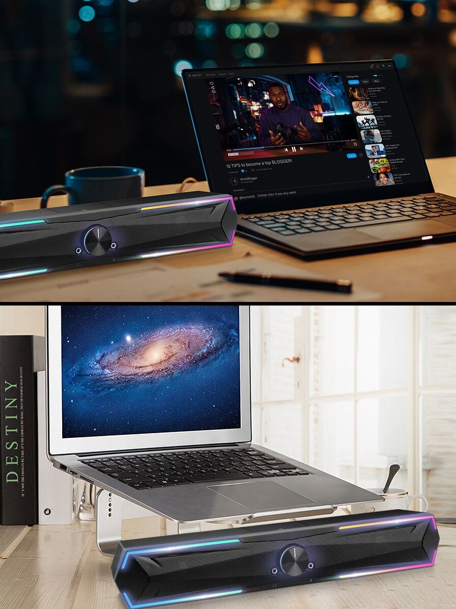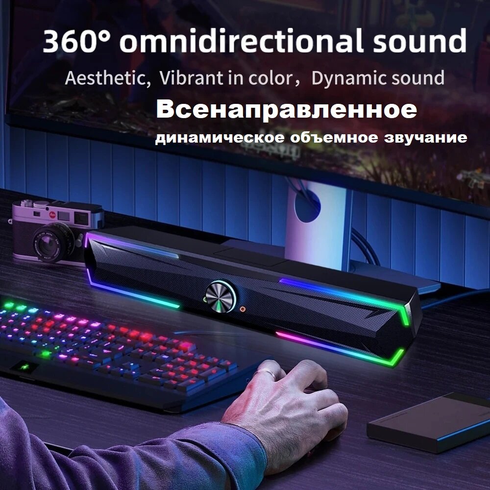 Игровой беспроводный саундбар RGB колонка для ноутбука и ПК интересное:
