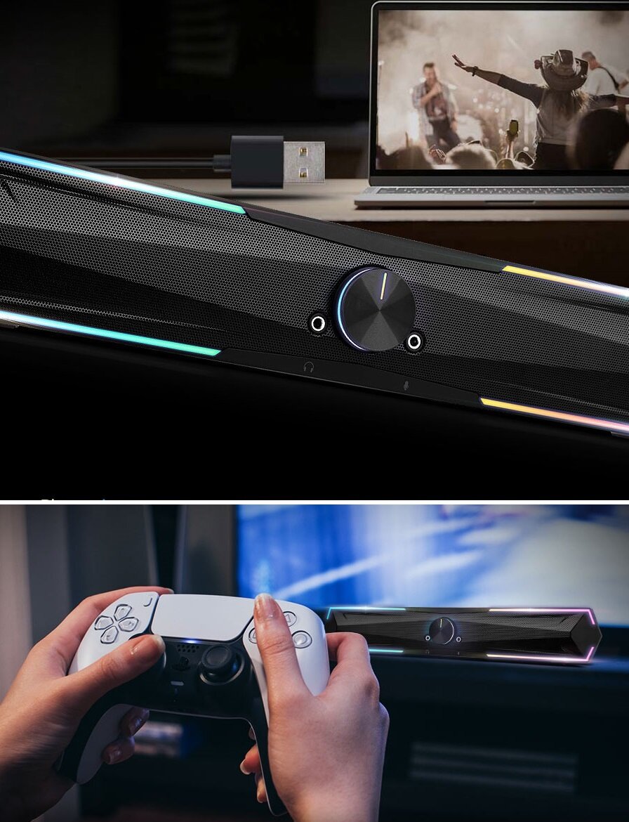 Игровой блютуз саундбар колонка для ноутбука и ПК 20 Вт AUX Bluetooth 5.3