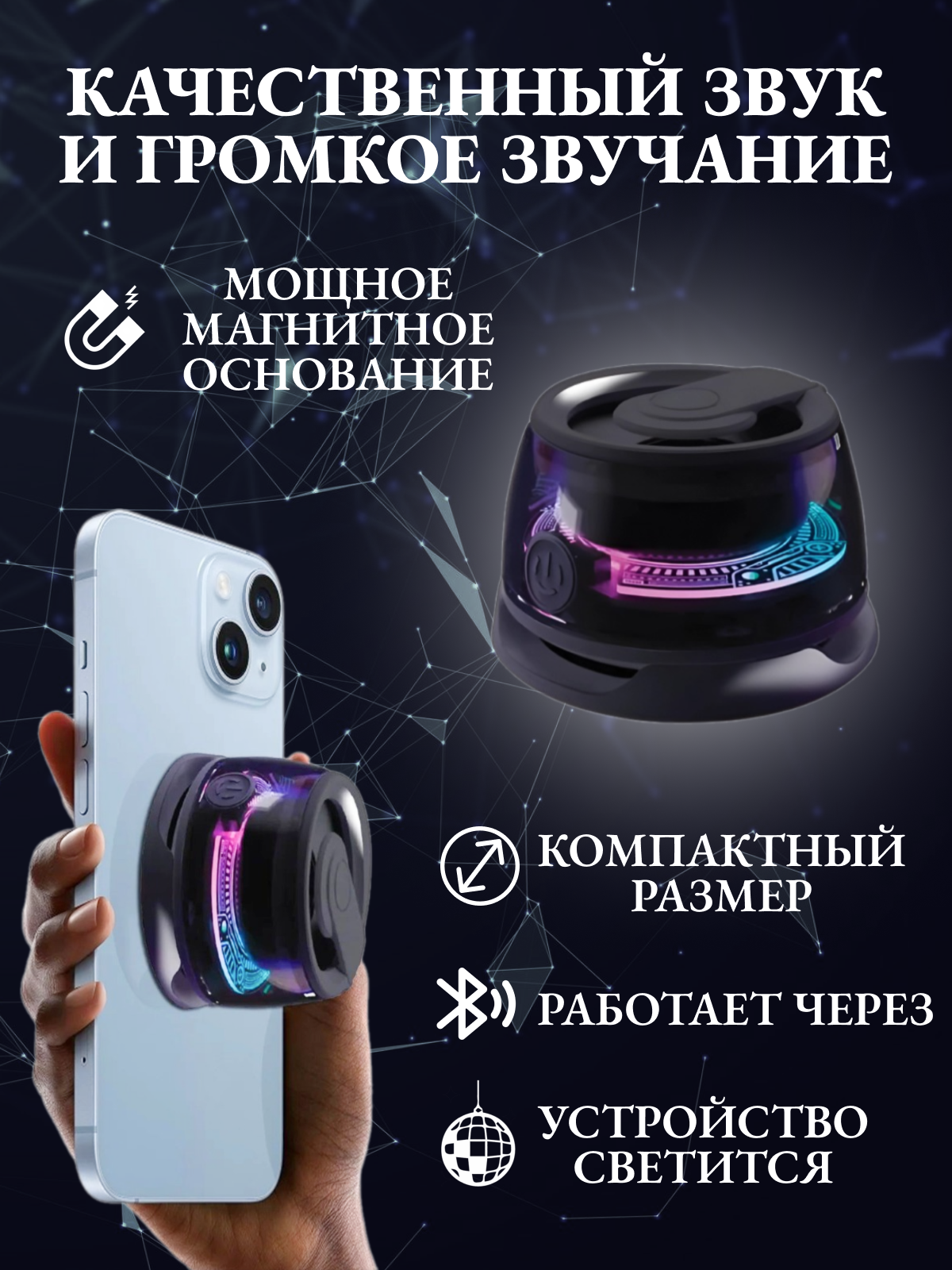 Мини колонка Bluetooth с подсветкой