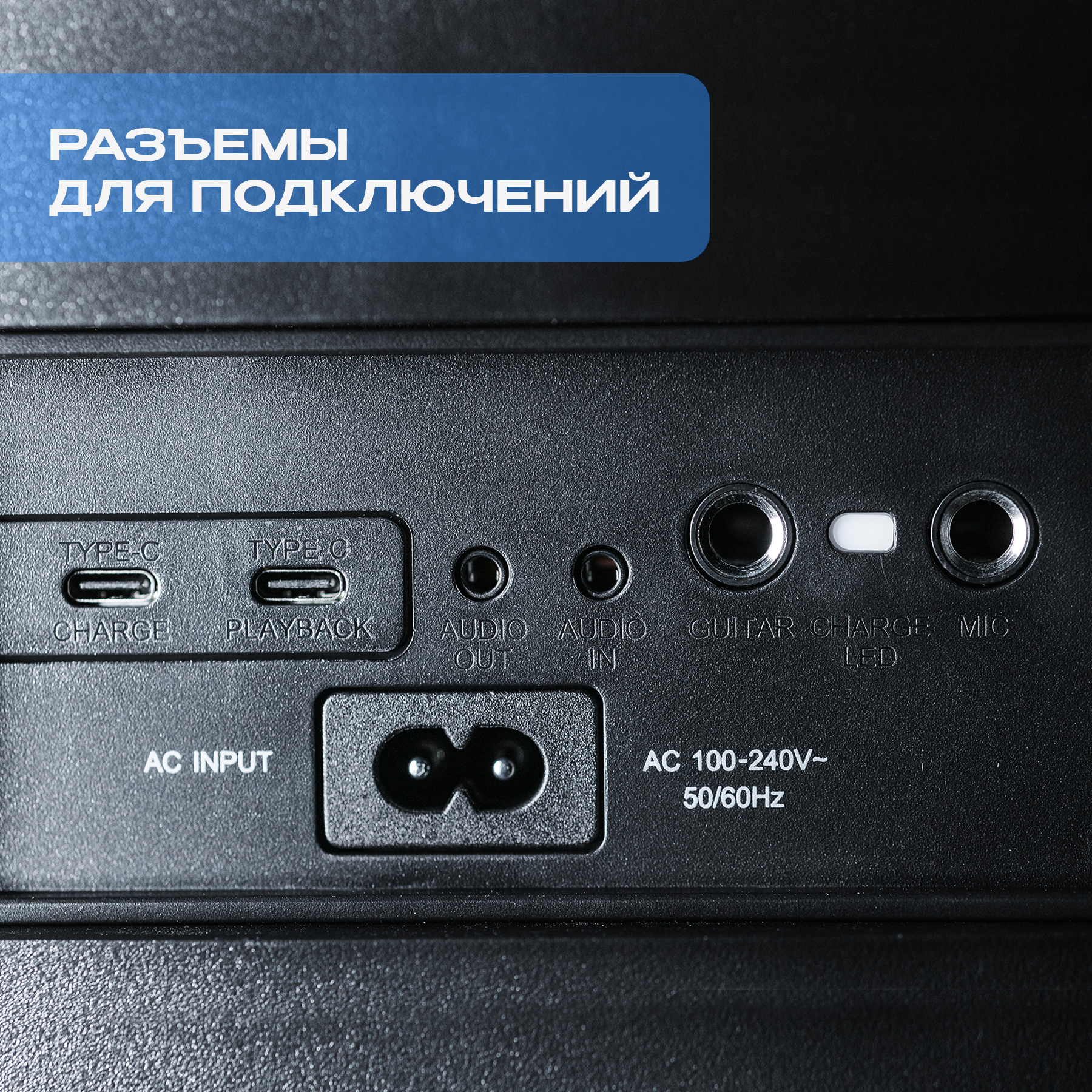 | Особенности | влагозащищенный корпус / караоке / режим Power Bank / ручка / световые эффекты |