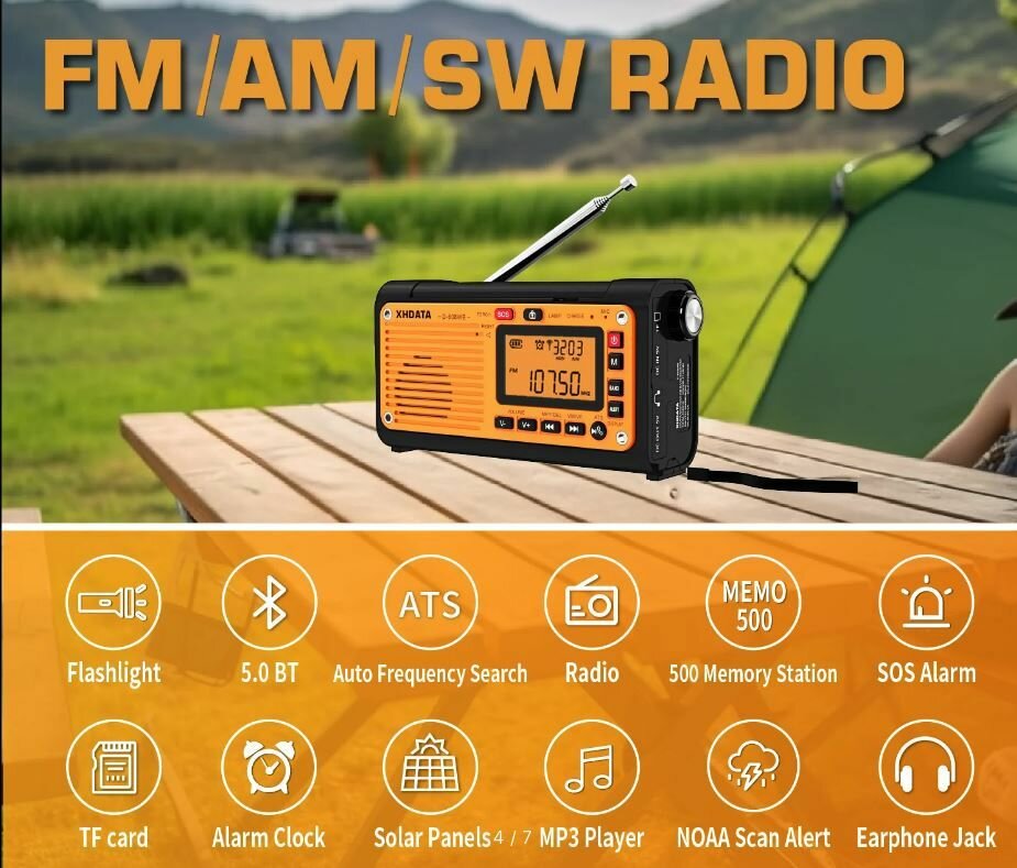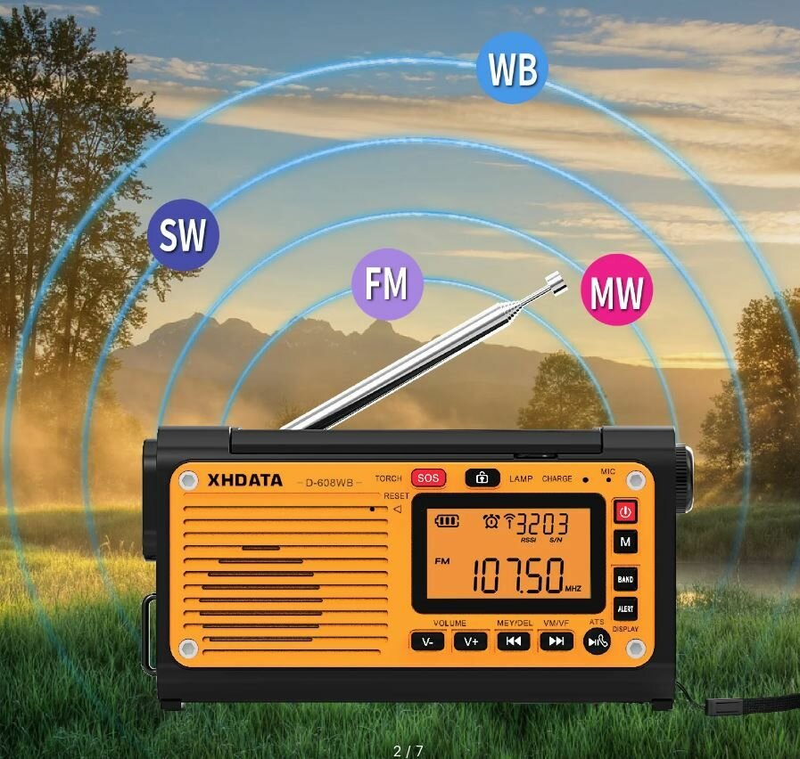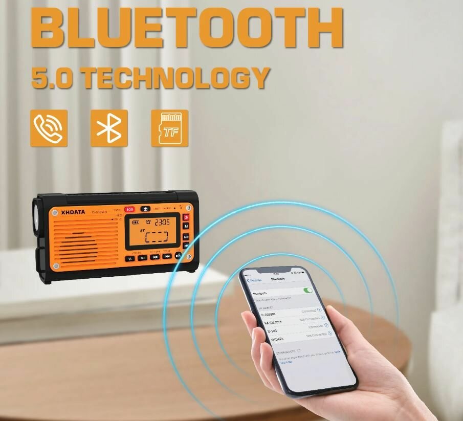 Радиоприемник XHDATA D-608WB солнечная батарея, динамо машина, фонарь, mp3, bluetooth интересное: