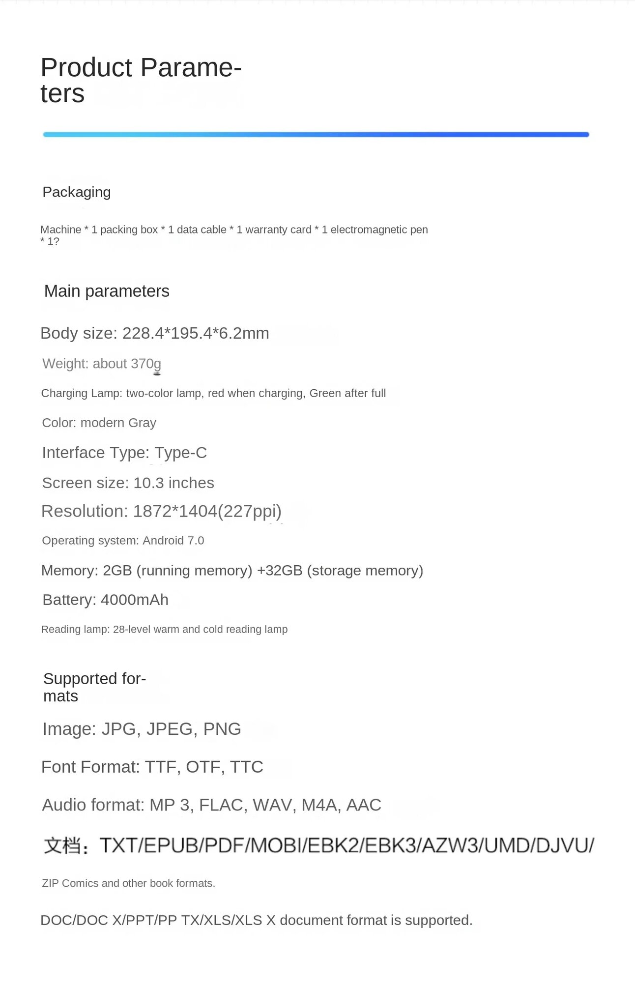 | Поддерживаемые форматы | TXT, PDF, EPUB, PPT, HTXT |