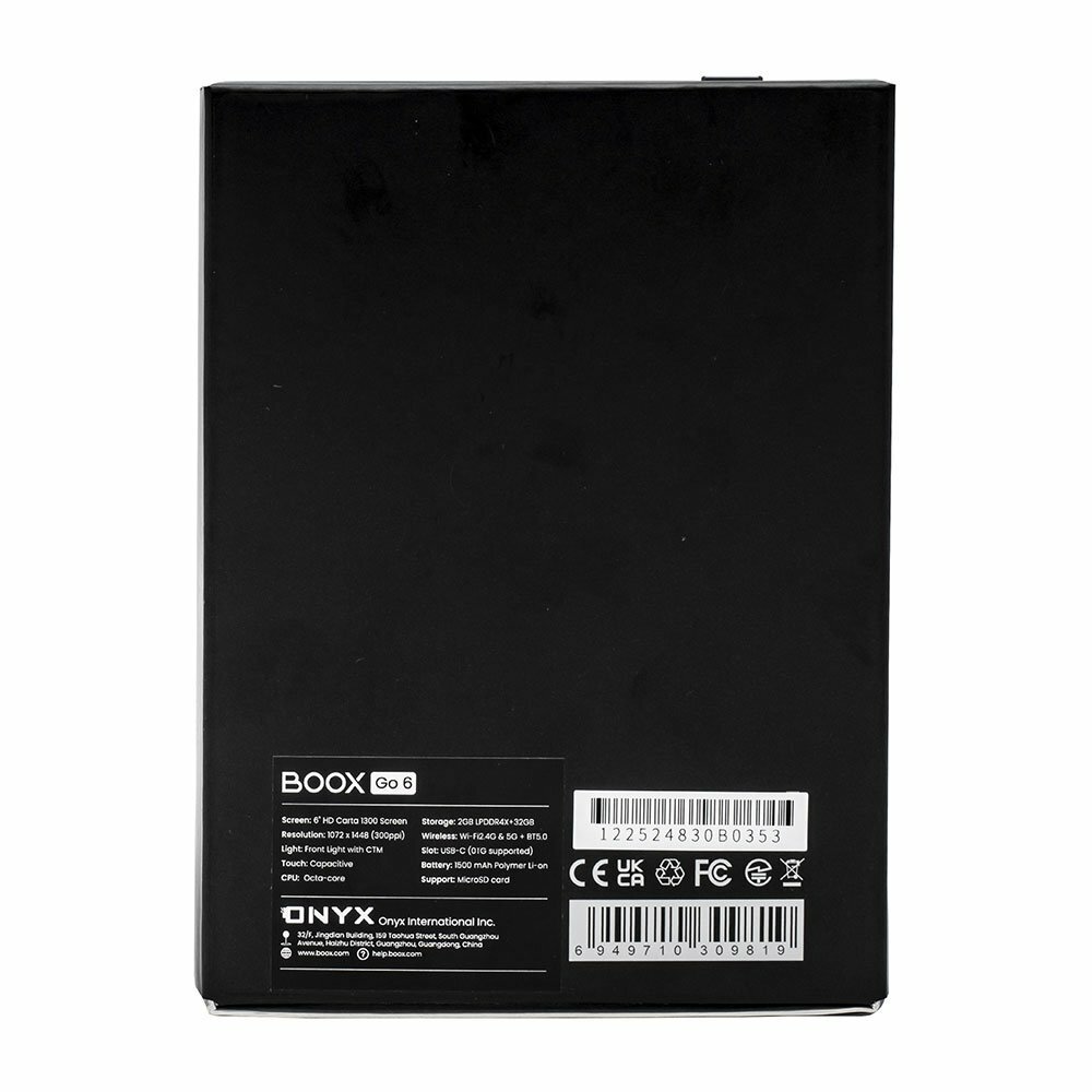 Электронная книга ONYX BOOX Go 6 (E Ink Carta Plus 6", 32ГБ, Android 11).