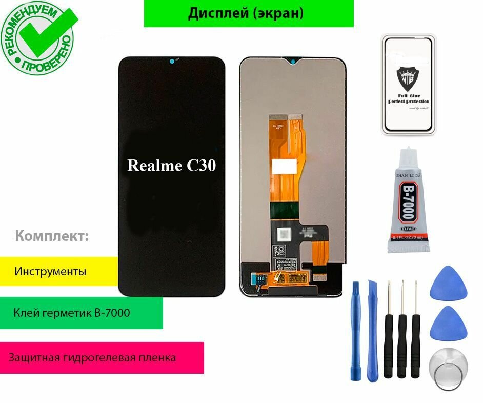 Дисплей (экран) для Realme C30, C33 с тачскрином в сборе с комплектом для установки (черный) интересное: