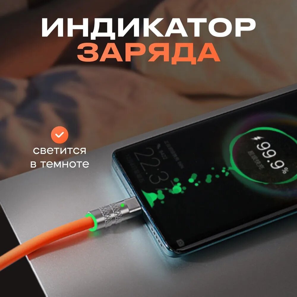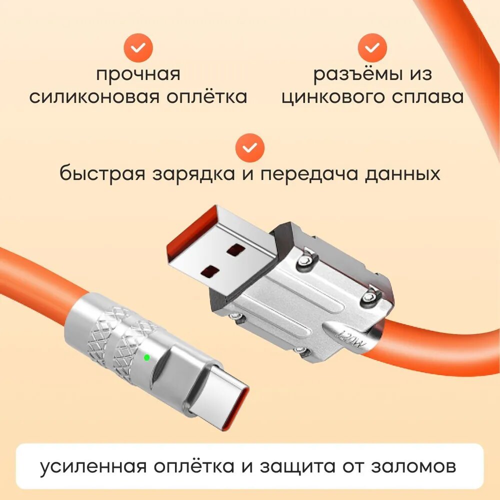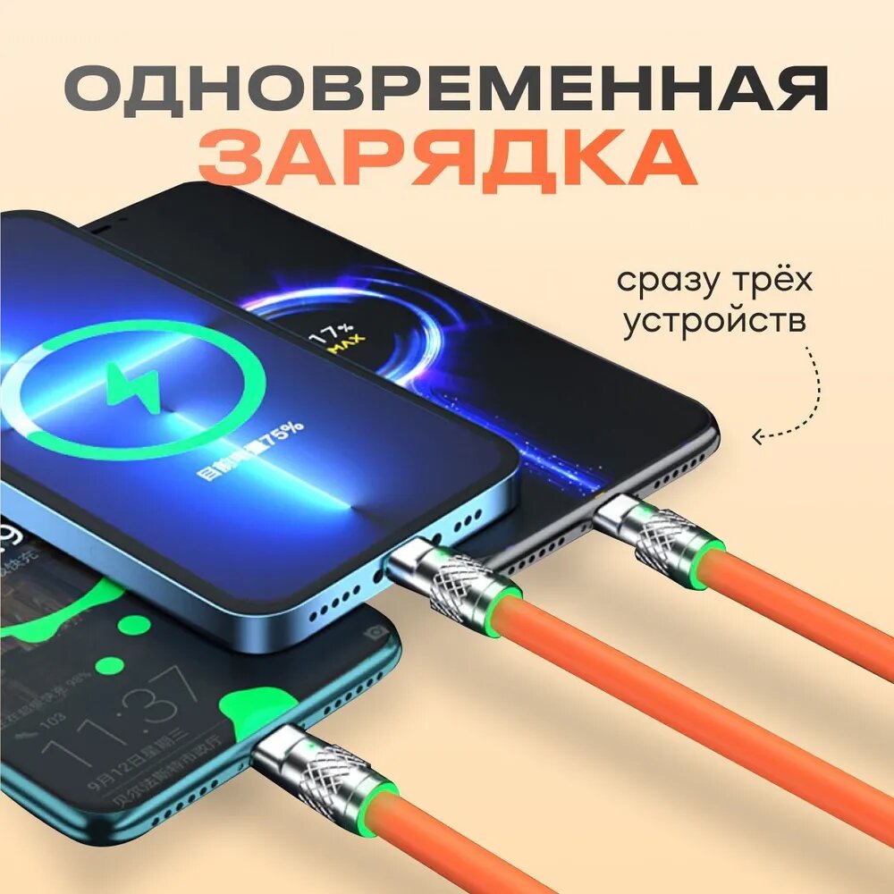 Usb кабель для зарядки 3 в 1 (Lightning, TYPE-C, Micro USB), 1.2 метра, 120 Вт, индикатор, цинк (Оранжевый) интересное: