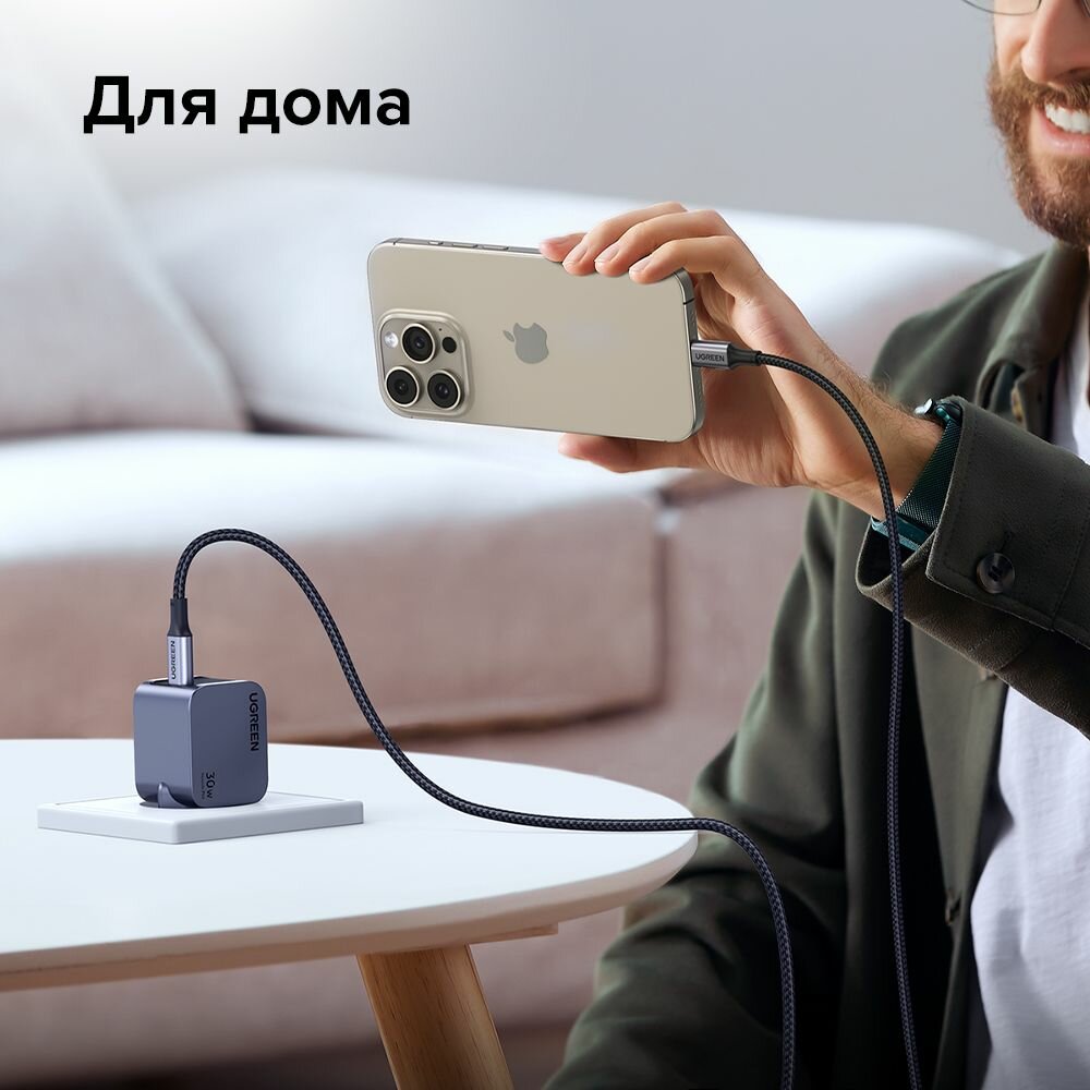 Сетевое зарядное устройство UGREEN CD319 (25257) Nexode Mini 30W USB-C PD GaN с кабелем 1м 60W. Цвет: серый космос