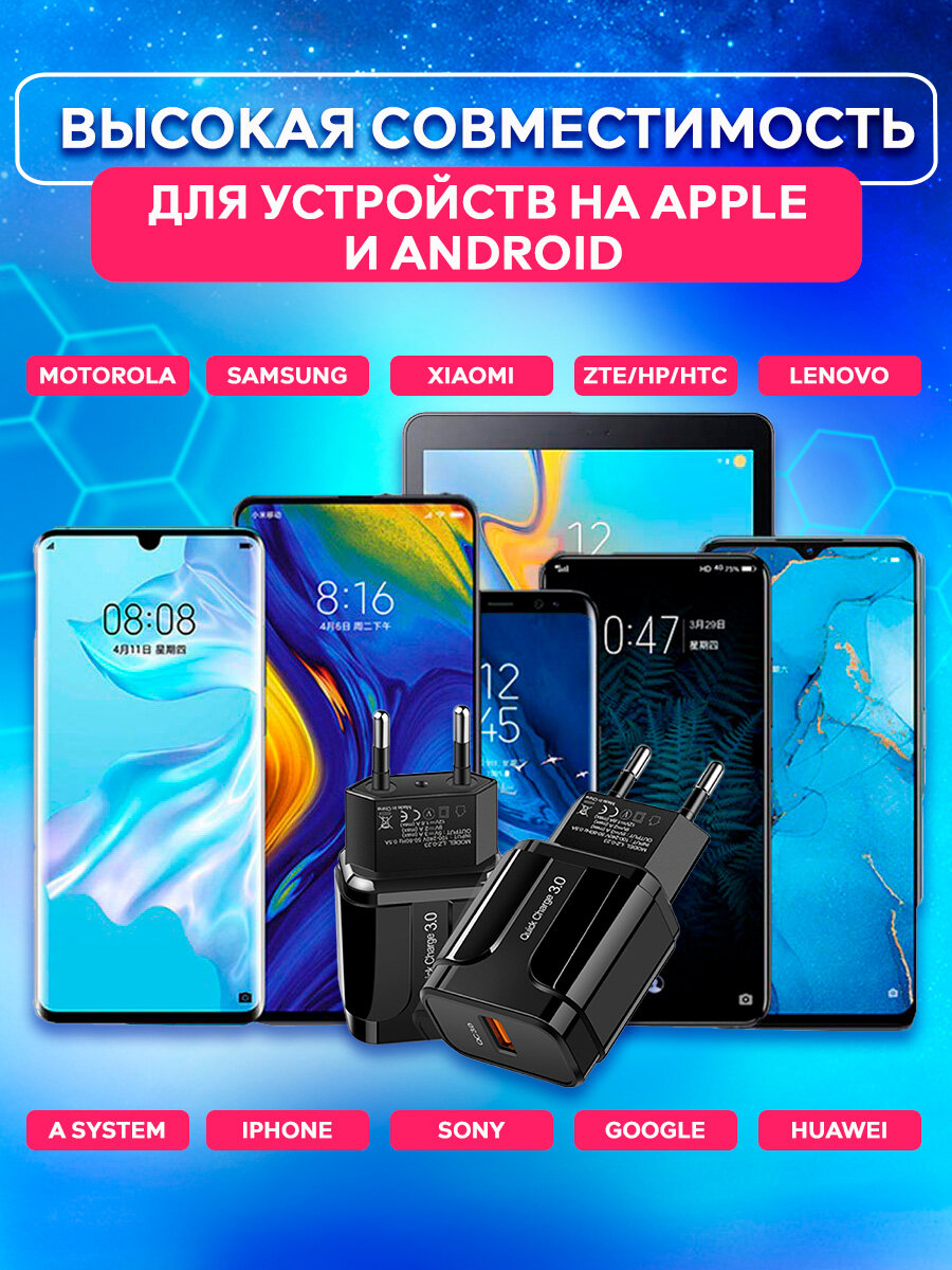 Быстрая зарядка для телефона 18W/QC 3.0 A, Сетевой блок питания, зарядное устройство, скоростной адаптер, черный интересное: