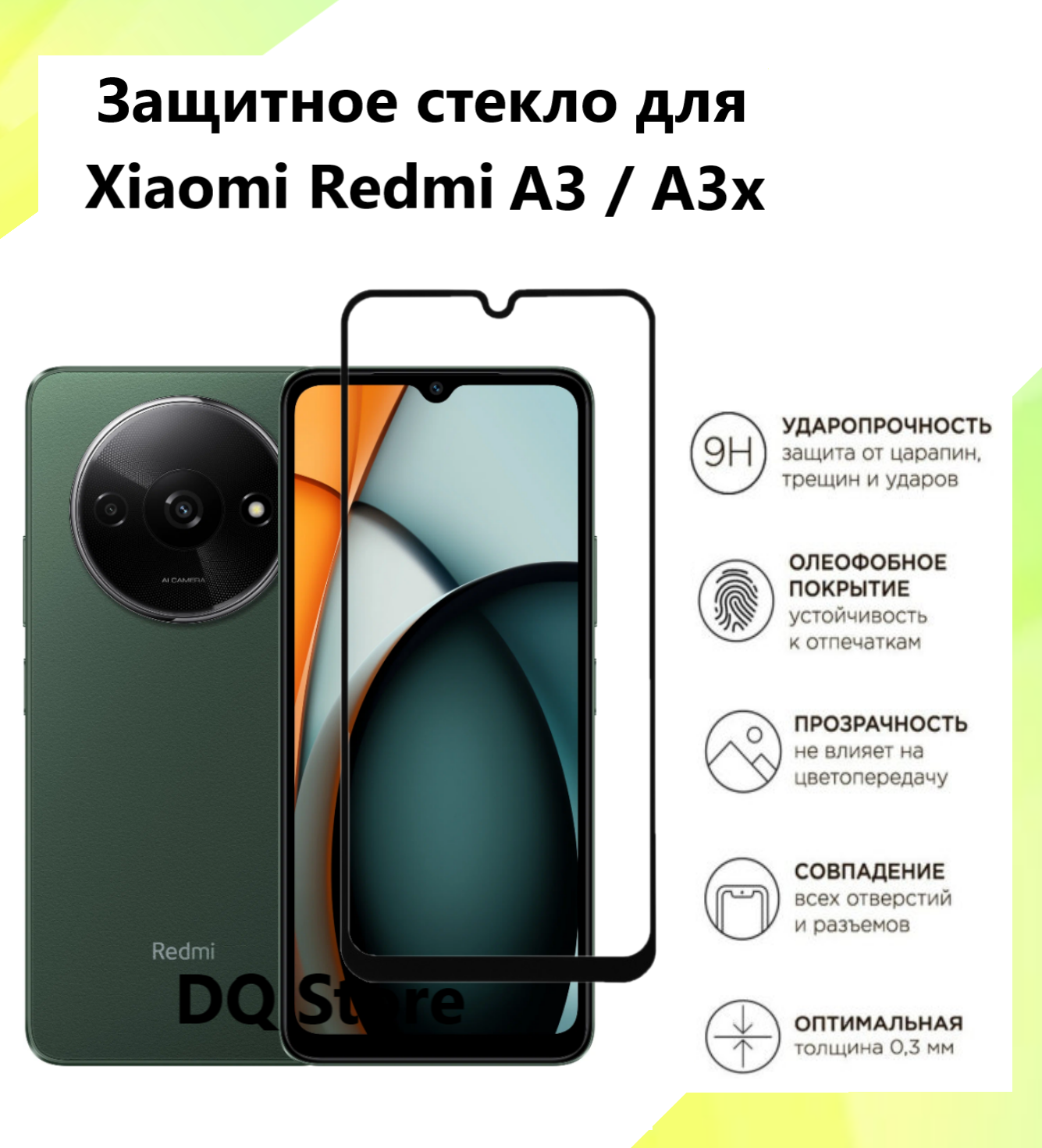 Защитное стекло на Xiaomi Redmi A3 / Ксяоми Редми А3 . Полноэкранное защитное стекло с олеофобным покрытием интересное: