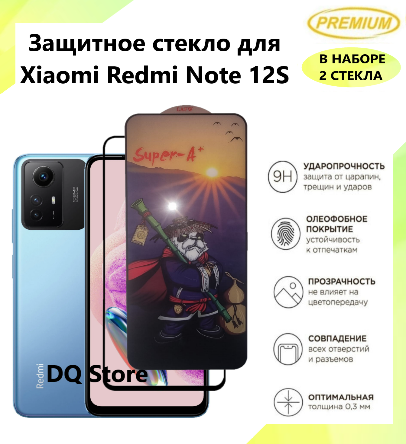 Купить 2 Защитных стекла на Xiaomi Redmi Note 12s / Редми Нот 12с . Полноэкранные защитные стекла с олеофобным покрытием Premium