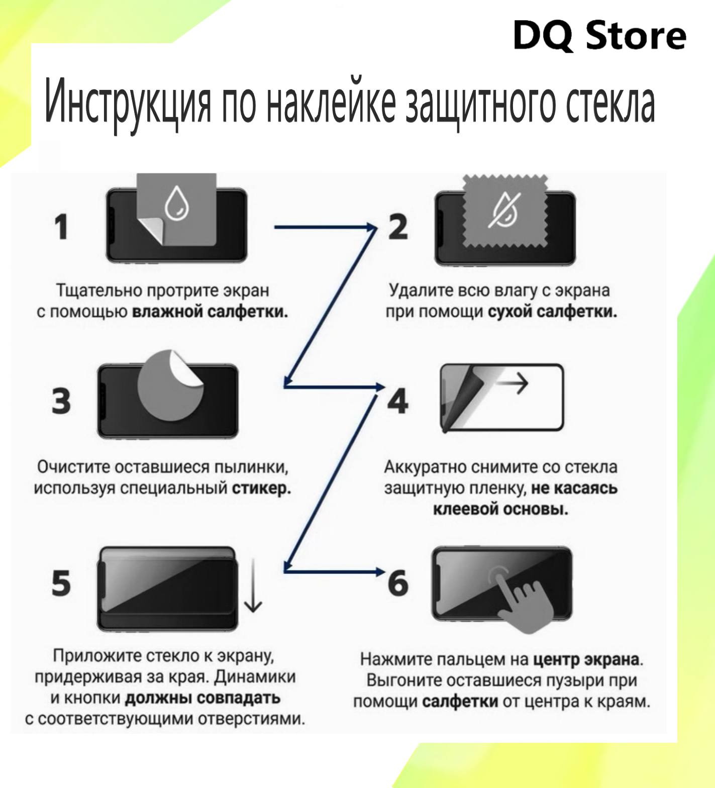 | Подробная комплектация | Стекло 1 шт ; стикеры для удаления пыли - 1 шт ; влажная салфетка - 1 шт ; сухая салфетка - 1 шт. |