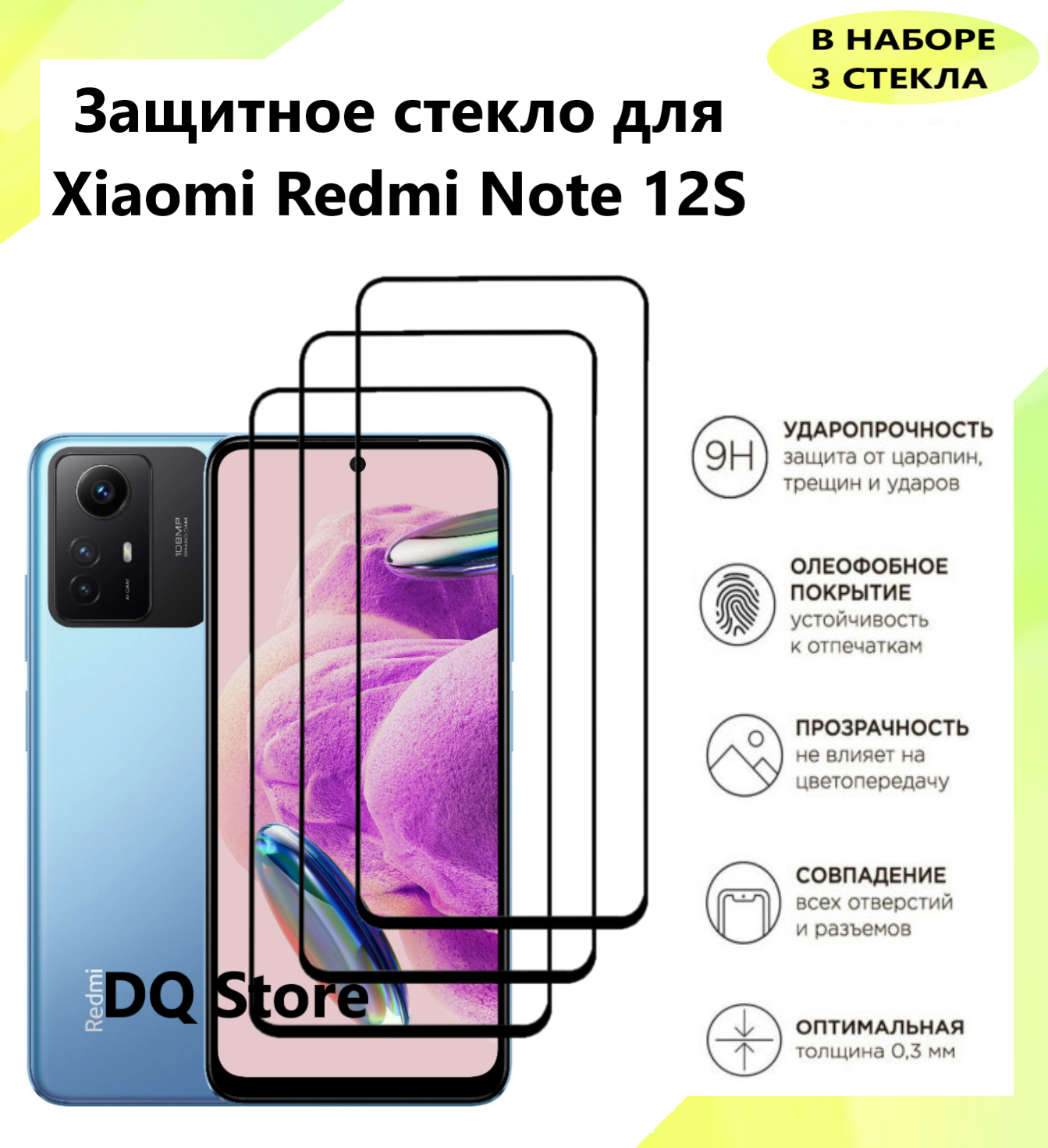 Купить 3 Защитных стекла на Xiaomi Redmi Note 12s / Редми Нот 12с . Полноэкранные защитные стекла с олеофобным покрытием