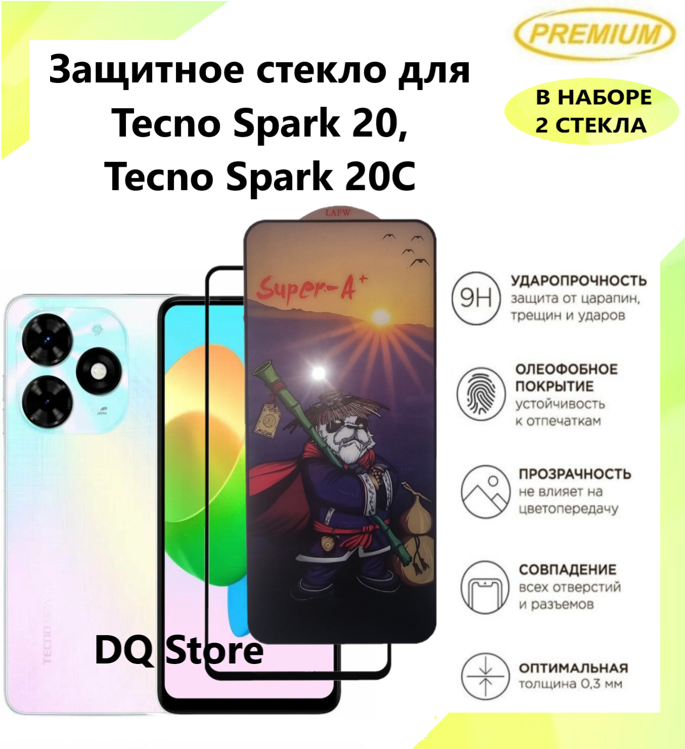 Купить 2 Защитных стекла на Tecno Spark 20 / Tecno Spark 20C / Техно Спарк 20 / Техно Спарк 20С . Полноэкранные защитные стекла с олеофобным покрытием Premium