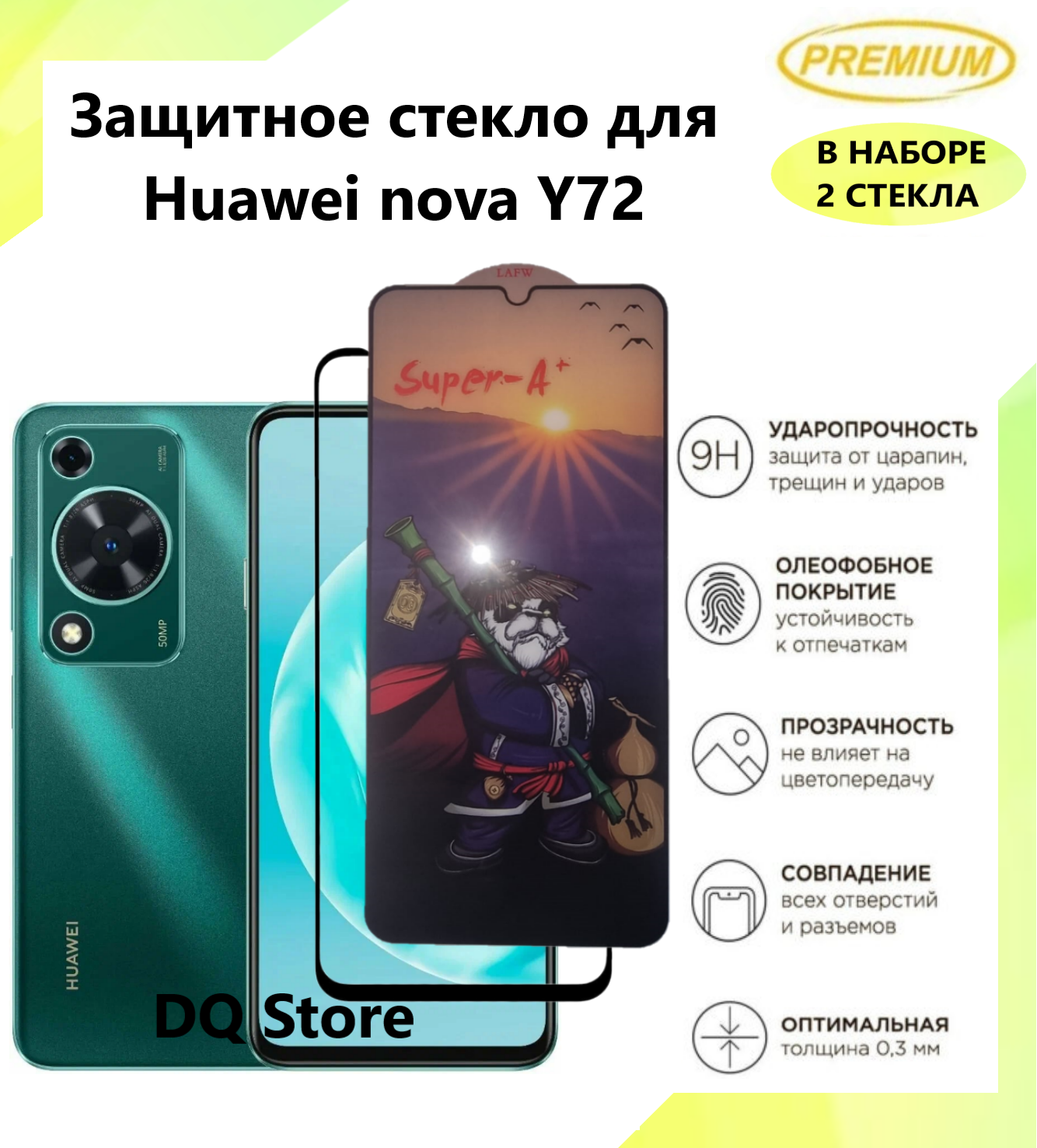 Купить 2 Защитных стекла на HUAWEI nova Y72 / Хуавей нова У72 . Полноэкранные защитные стекла с олеофобным покрытием Premium