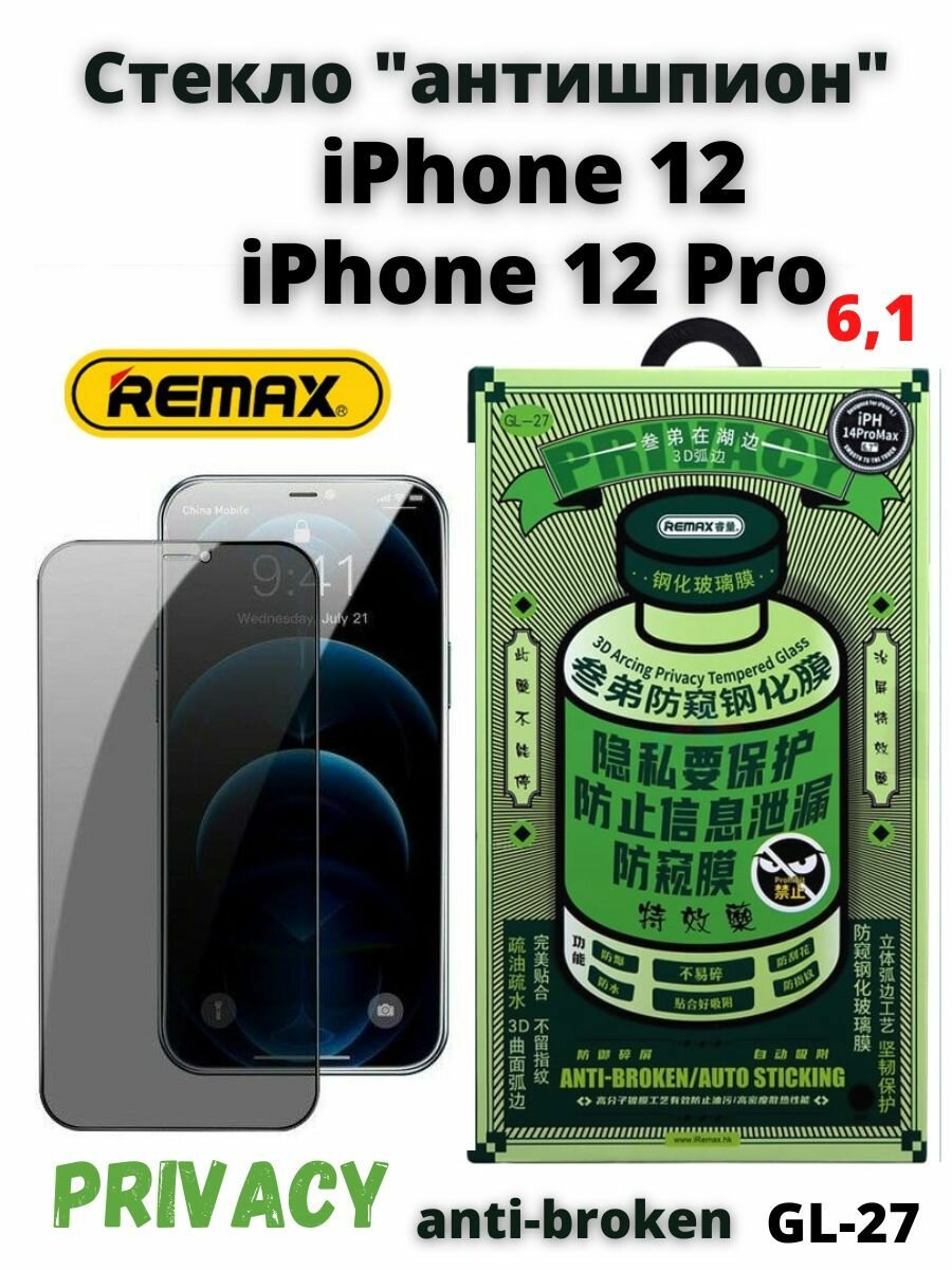 Защитное Глянцевое стекло Remax антишпион для Apple iPhone 12 / 12 Pro 6.1" / бронь противоударная от сколов, царапин на экран айфона 12/12 про интересное: