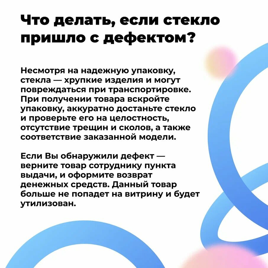| Подробная комплектация | В комплект входит: защитное стекло - 1 шт., стикеры для удаления пыли - 1 шт.; влажная салфетка - 1 шт.; сухая салфетка - 1 шт. |