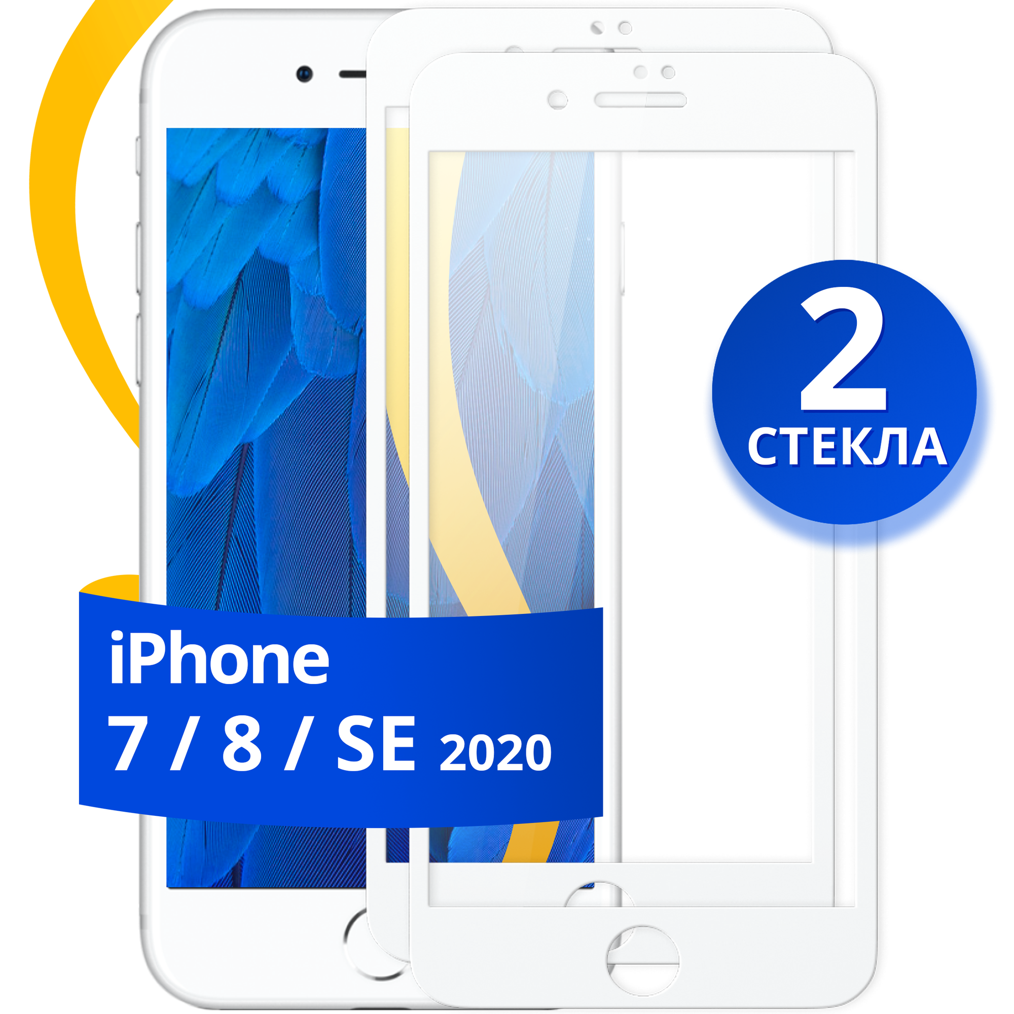 Купить Комплект из 2 шт. Защитное стекло для iPhone 7, 8 и SE 2020 / Белое стекло на Айфон 7, 8 и СЕ / Противоударное