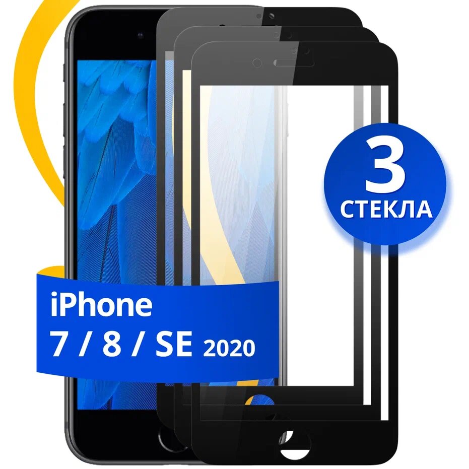 Купить Комплект из 3 шт. Глянцевое защитное стекло для телефона Apple iPhone 7, 8 и SE 2020 / Противоударное стекло на cмартфон Эпл Айфон 7, 8 и СЕ / Черное