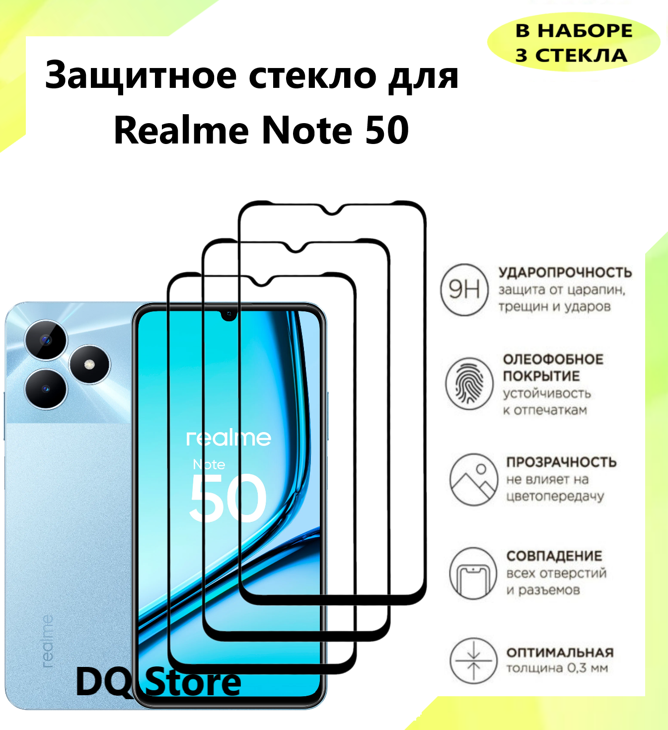 Купить 3 Защитных стекла на Realme Note 50 / Реалми Ноут 50 . Полноэкранные защитные стекла с олеофобным покрытием