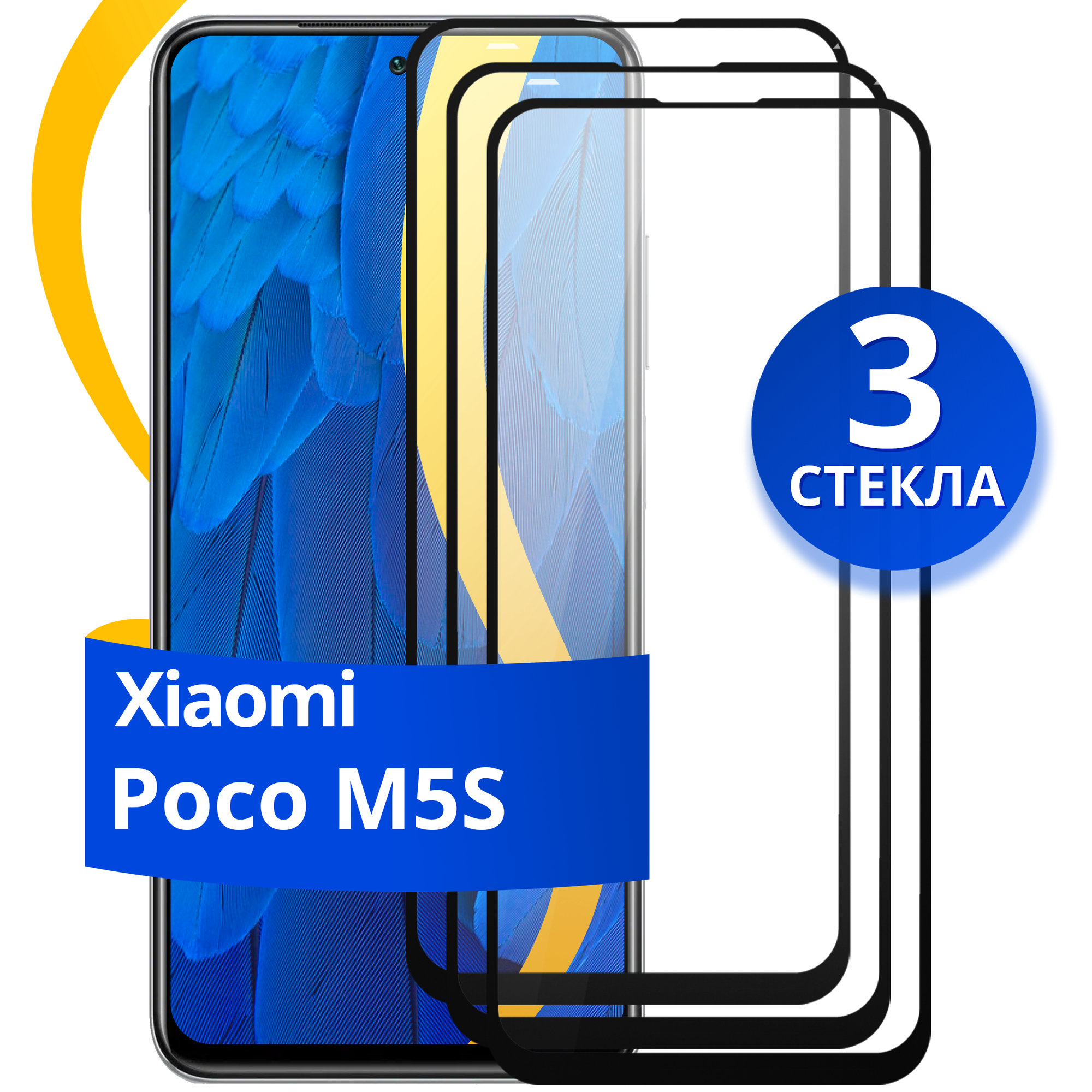Купить Комплект из 3 шт. Глянцевое защитное стекло для телефона Xiaomi Poco M5S / Противоударное стекло с олеофобным покрытием на смартфон Сяоми Поко М5С
