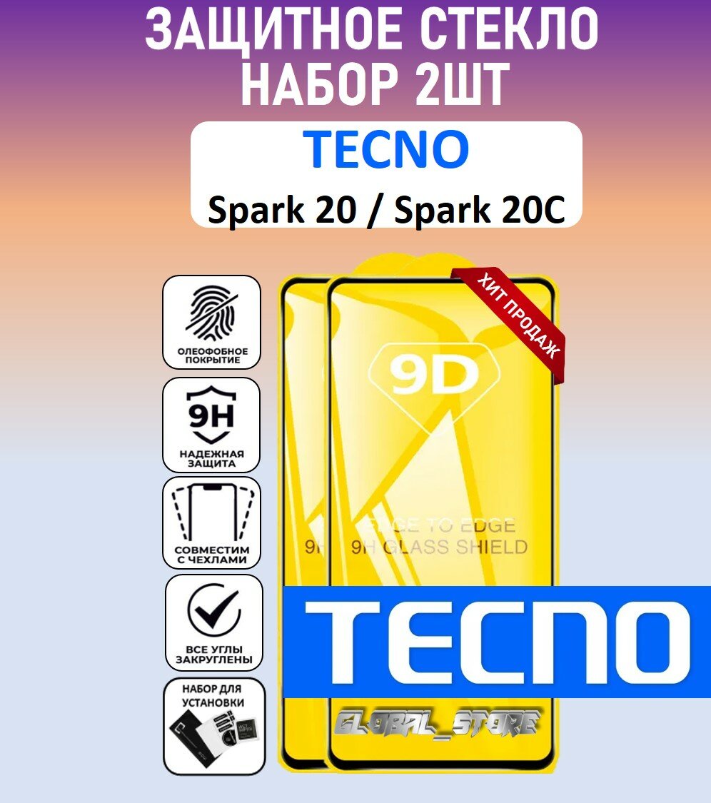 Купить Защитное полноэкранное стекло для Tecno Spark 20 / Spark 20C / Набор 2 Штуки ( Техно Спарк 20Ц / Спарк 20 ) Full Glue