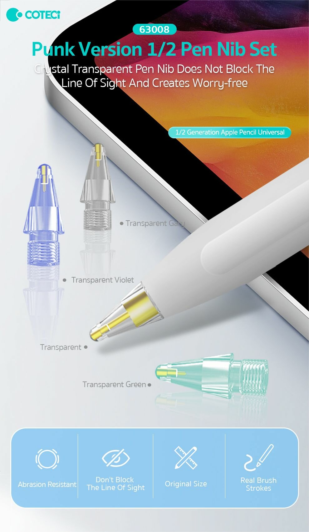 Купить Наконечники для Apple Pencil 4 шт COTECi Разноцветные