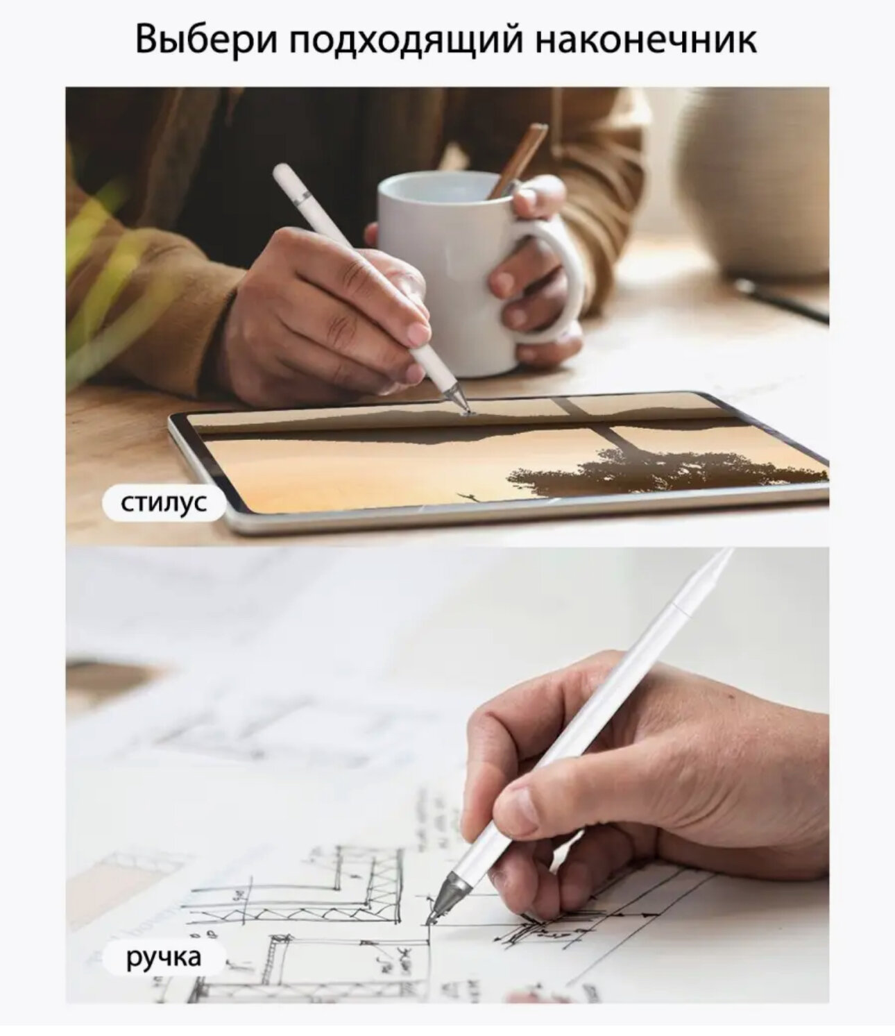 Стилус 2 в 1/ универсальный стилус для смартфонов, планшетов, ноутбука/ White интересное: