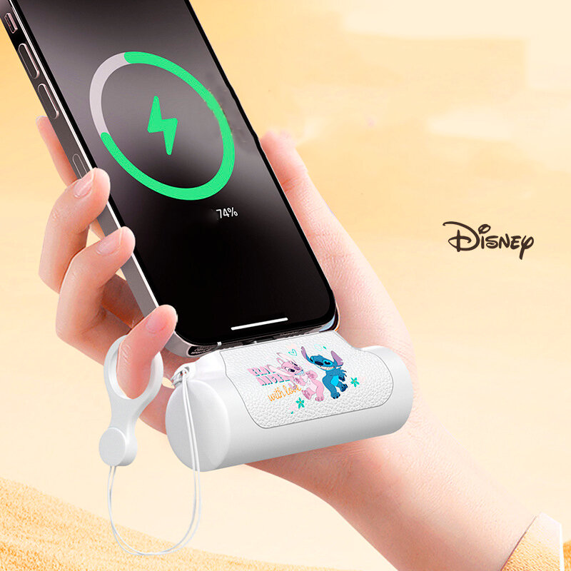 Внешний аккумулятор 5000 mAh Lightning, Powerbank Disney MINI (Белый-Стич)
