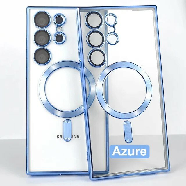 Купить Премиальный чехол для Samsung S24 Ultra противоударный с поддержкой беспроводной зарядки с защитой камер небесно-голубой