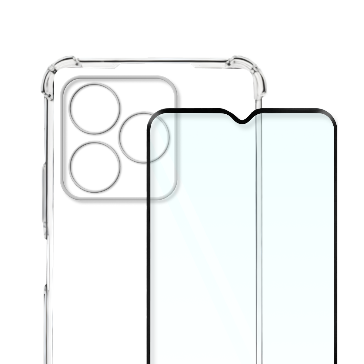 Комплект 2 в 1: Чехол + стекло для Realme C51 противоударный силиконовый прозрачный клип-кейс с защитой камеры и углов на Реалми Ц51