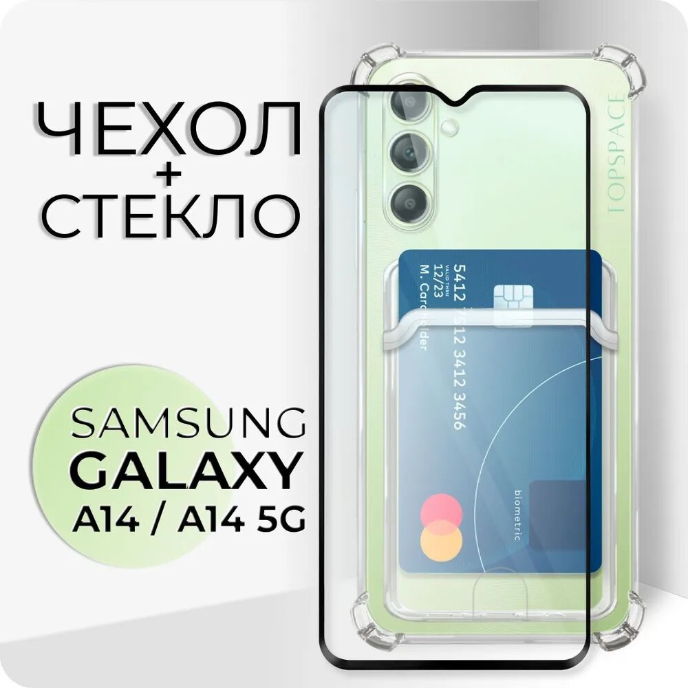 Купить Комплект 2 в 1: Чехол №05 + стекло для Samsung Galaxy A14 / A14 5G / с карманом для карт и защитой камеры и углов на Самсунг Гэлакси А14 / А14 5Г