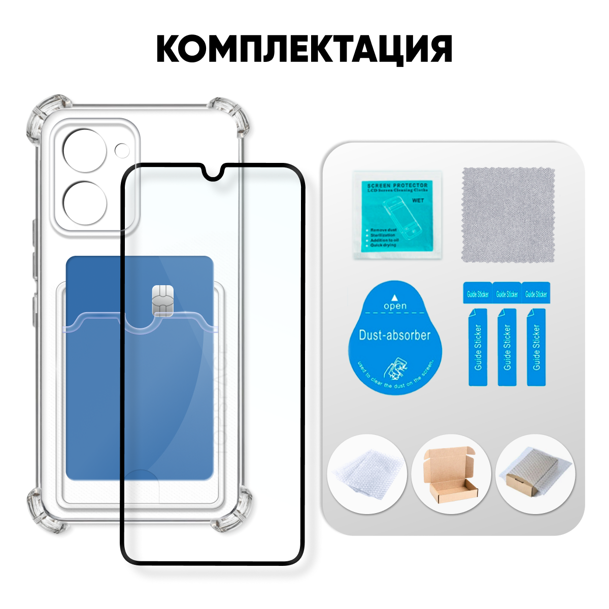 Комплект 2 в 1: Чехол №04 + стекло для Realme C33 / противоударный прозрачный клип-кейс с карманом для карт и защитой камеры на Реалми Ц33