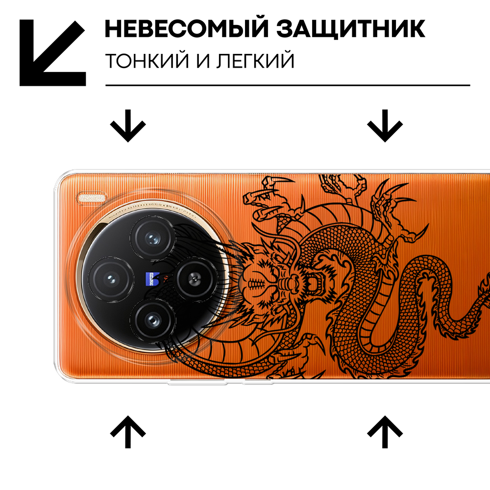 СохранитьЧехол на Vivo X100 / Виво X100 с принтом Китайский дракон, прозрачный интересное: