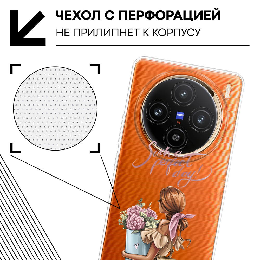 СохранитьЧехол на Vivo X100 / Виво X100 с принтом Девушка с букетом, прозрачный интересное: