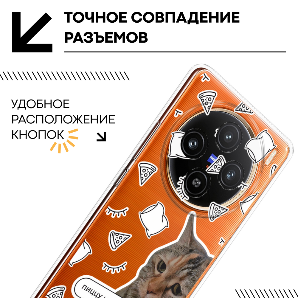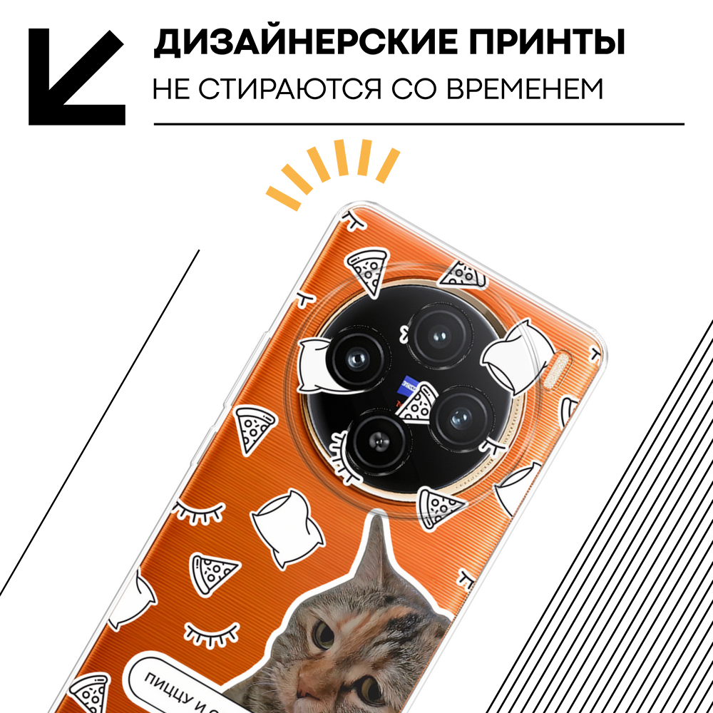 Чехол на Vivo X100 / Виво X100 с принтом С котом парный, прозрачный