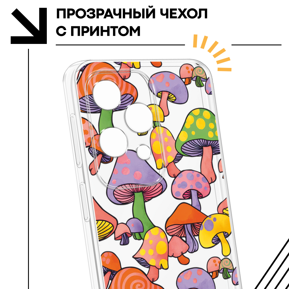 СохранитьЧехол на Vivo X100 / Виво X100 с принтом Цветные грибы, прозрачный интересное: