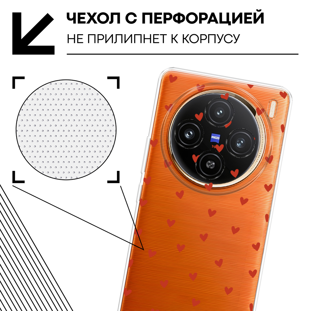 Купить Чехол на Vivo X100 / Виво X100 с принтом Прозрачный с сердечками, прозрачный