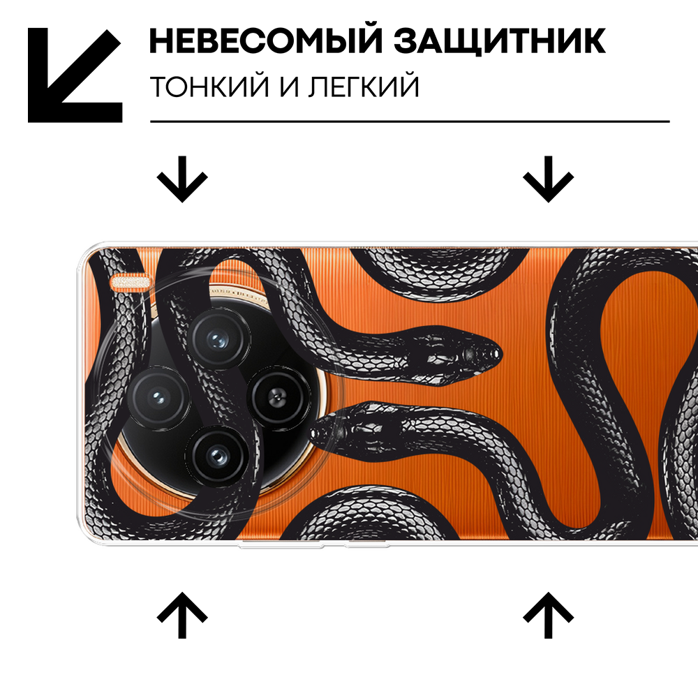 СохранитьЧехол на Vivo X100 / Виво X100 с принтом Черные змеи, прозрачный интересное: