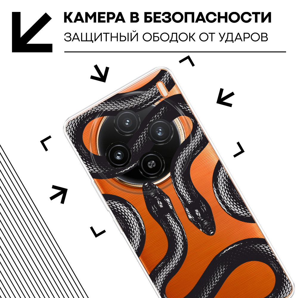 Купить Чехол на Vivo X100 / Виво X100 с принтом Черные змеи, прозрачный
