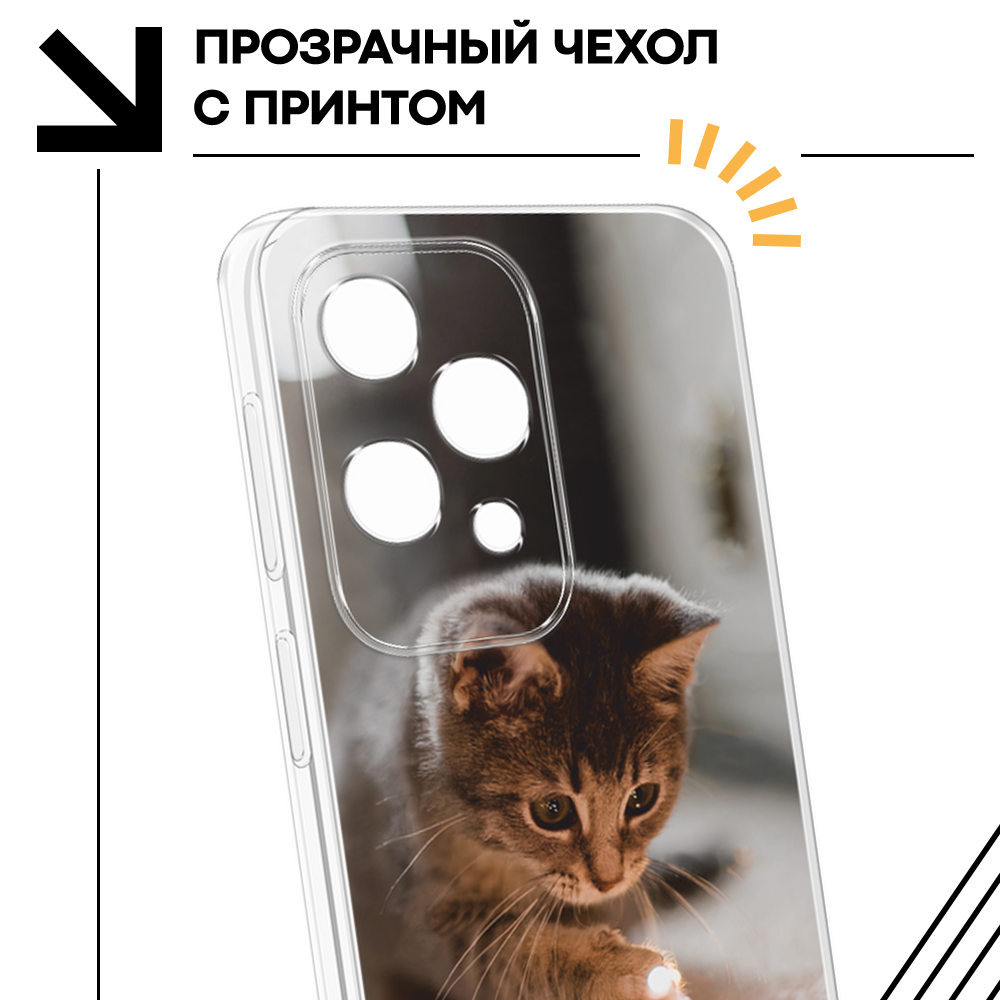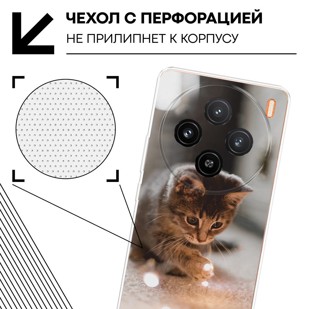СохранитьЧехол на Vivo X100 / Виво X100 с принтом Любознательный котенок интересное: