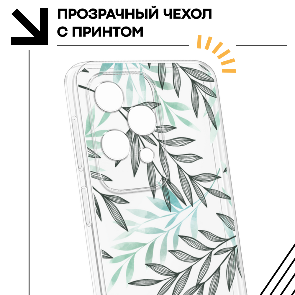 СохранитьЧехол на Vivo X100 / Виво X100 с принтом Тонкие листья, прозрачный интересное:
